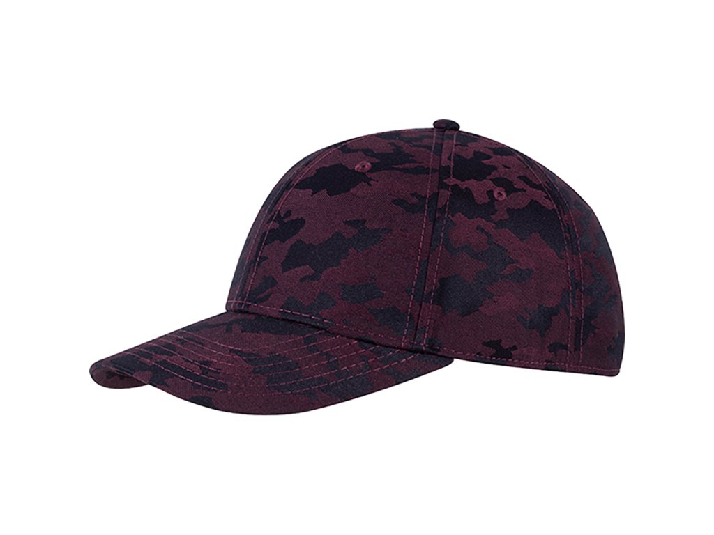 unisex 6ti panelová kšiltovka s maskáčovým potiskem, vyztuženým čelem, bavlněným potícím páskem a nastavitelným suchým zipem