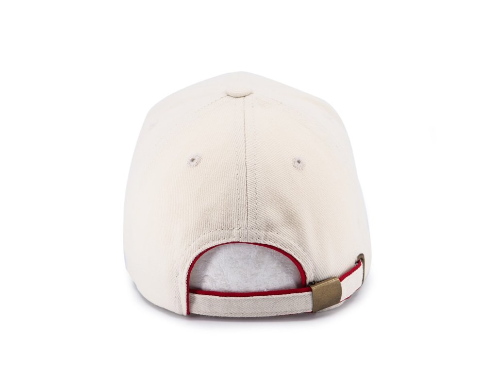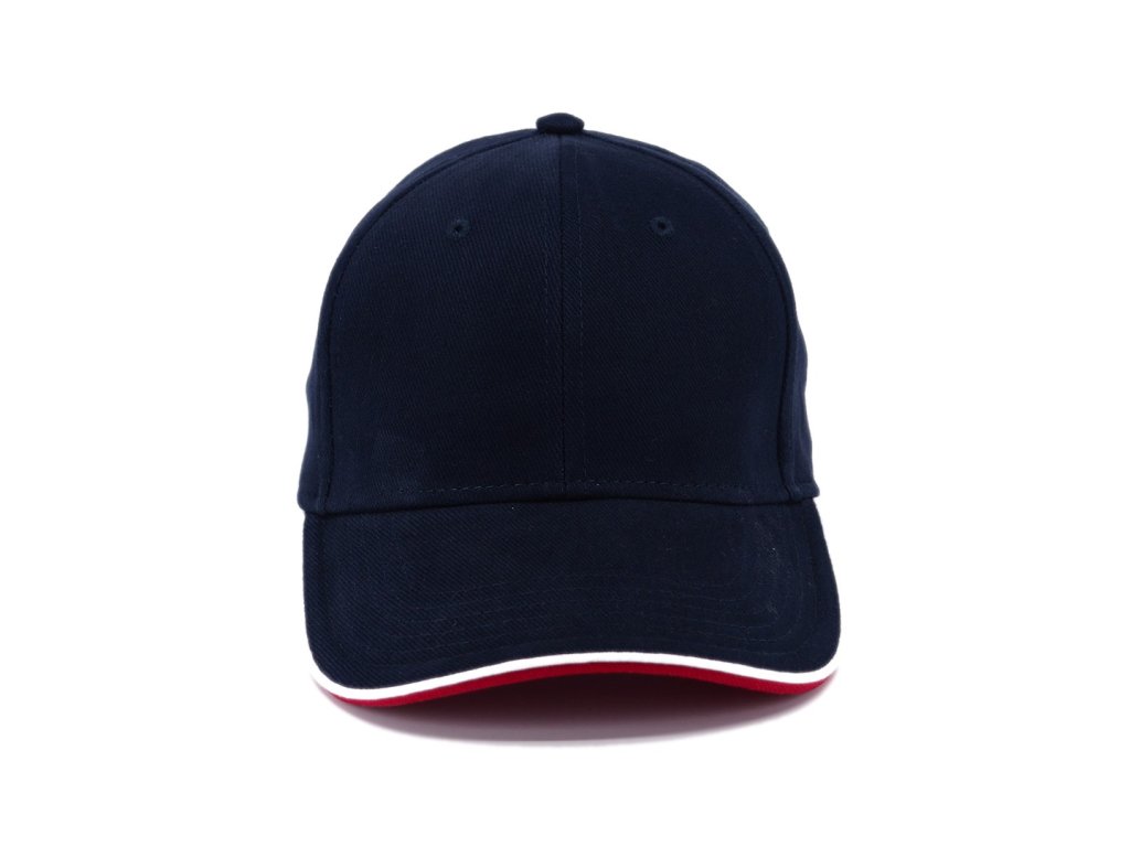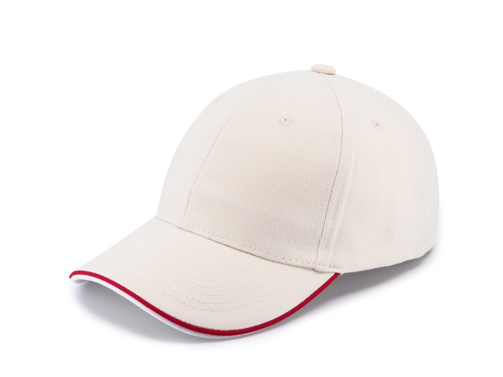 6ti panelová čepice z broušené bavlny s vyztuženým čelem, kontrastní linkou a barevně odlišeným spodním kšiltem,nastavitelná mosaznou sponou