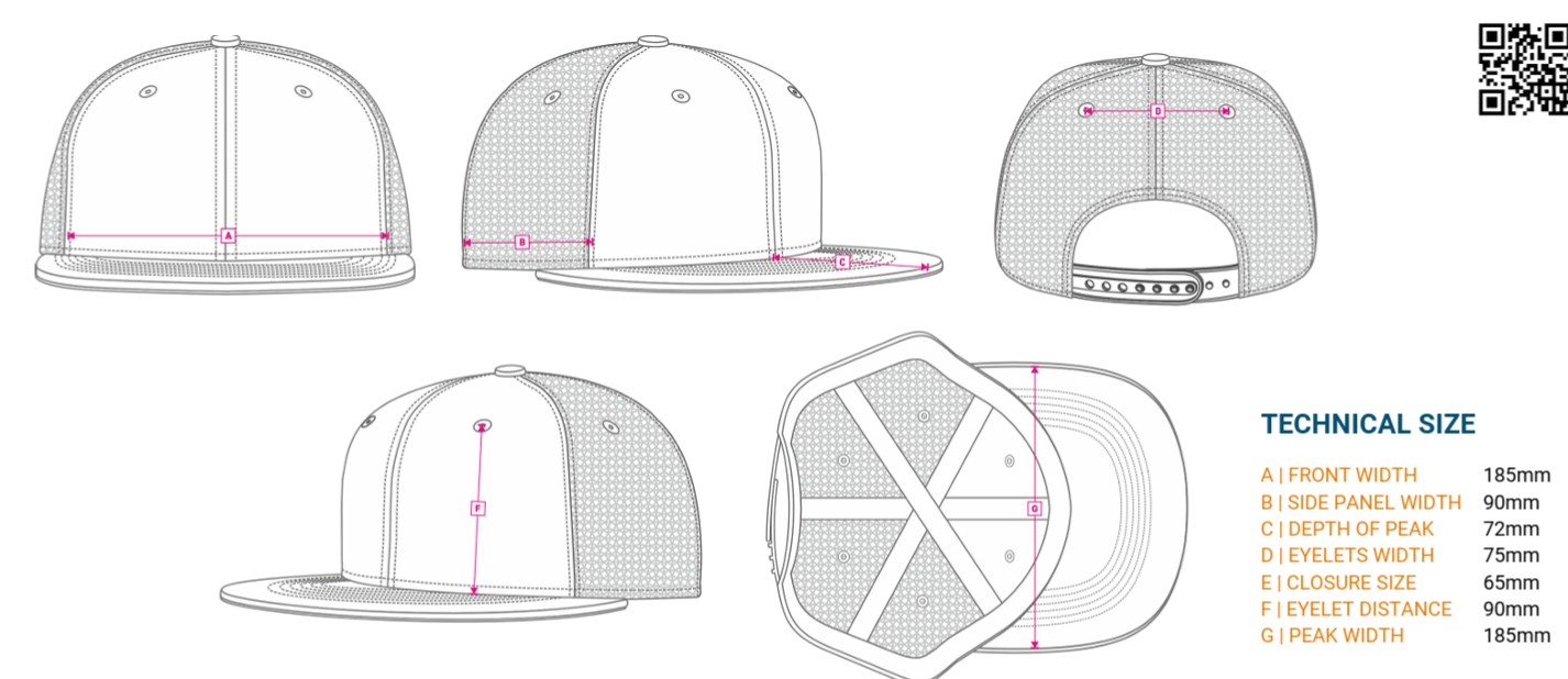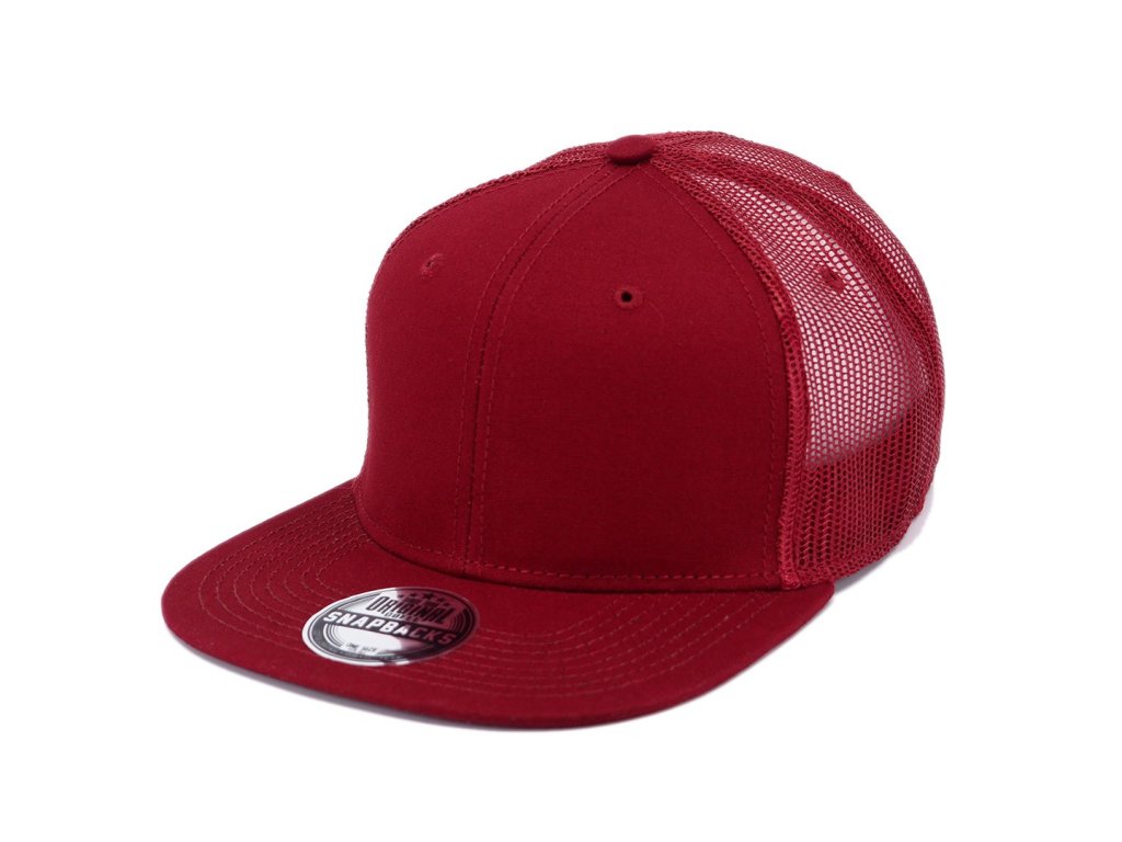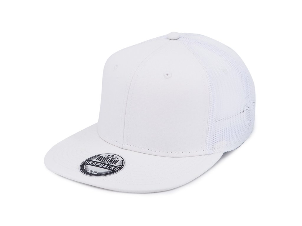 6tipanelová kšiltovka Snap Mesh s plochým kšiltem, vyztuženým čelem a síťovanými panely pro odvětrávání, nastavitelná snapback