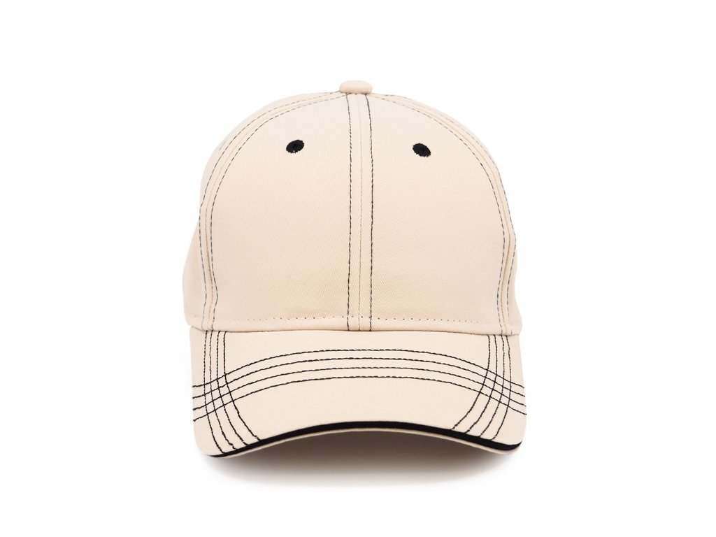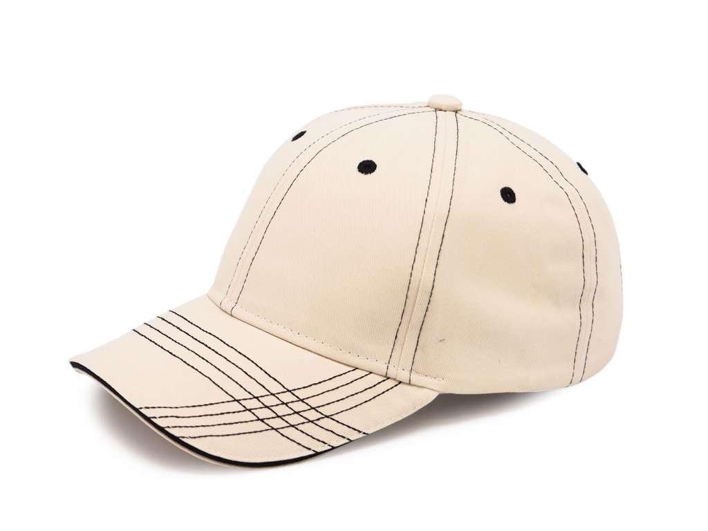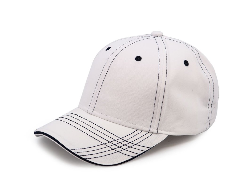 6ti panelová bavlněná kšiltovka s kontrastním prošitím, barevným proužkem v kšiltu, větracími otvory a nastavitelnou kovovou sponou