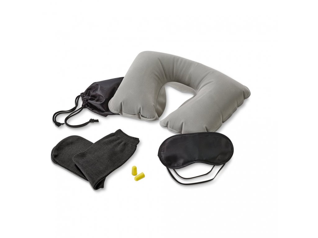 nafukovací polštář za krk, maska na spaní, špunty do uší, 1 pár ponožek