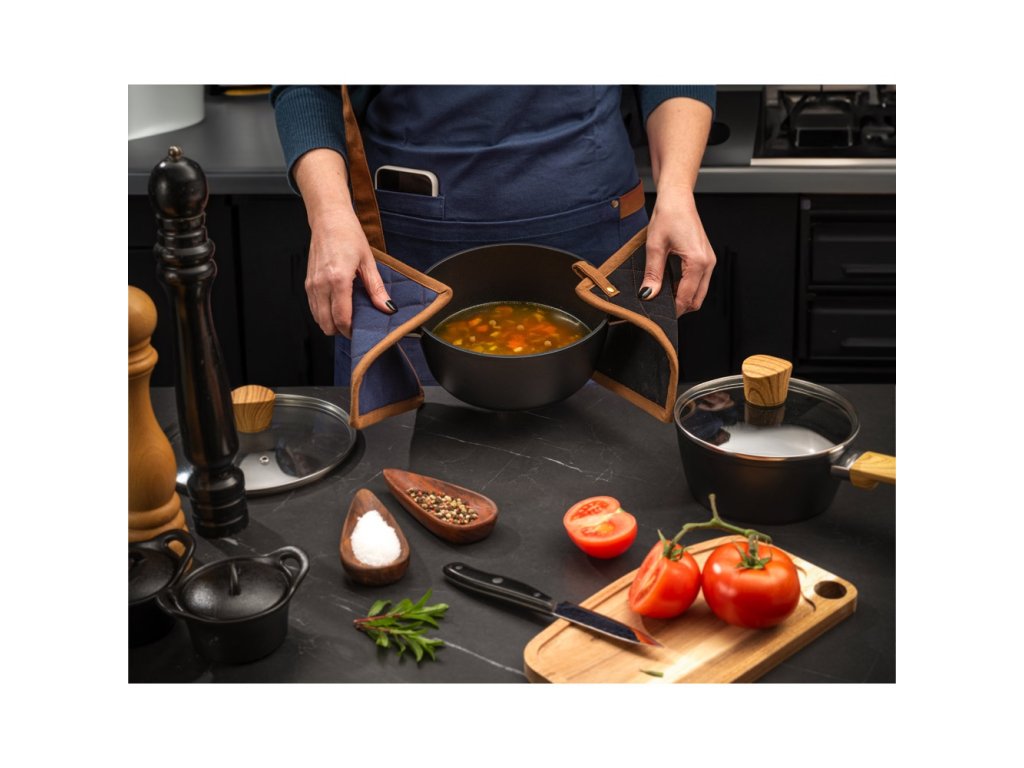 Chňapka CLOVES poskytuje spolehlivou ochranu rukou při práci s horkým nádobím. Použitý bavlněný materiál s gramáží 275 g/m² zajišťuje dostatečnou tepelnou izolaci a dlouhou životnost i při pravidelném používání. Bavlněné lemování zpevňuje okraje a zabraňuje třepení. Praktické poutko umožňuje snadné zavěšení chňapky a její rychlou dostupnost během vaření nebo pečení.
