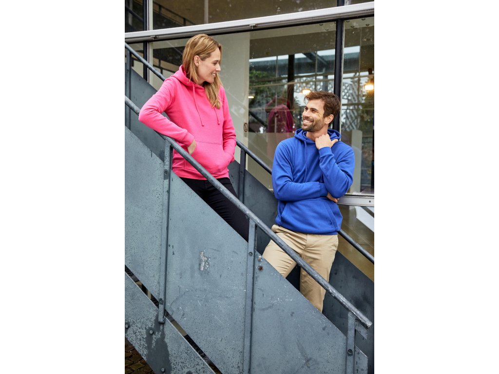 lehce vypasovaný střih s kapucí a klokaní kapsou s vyšším podílem bavlny