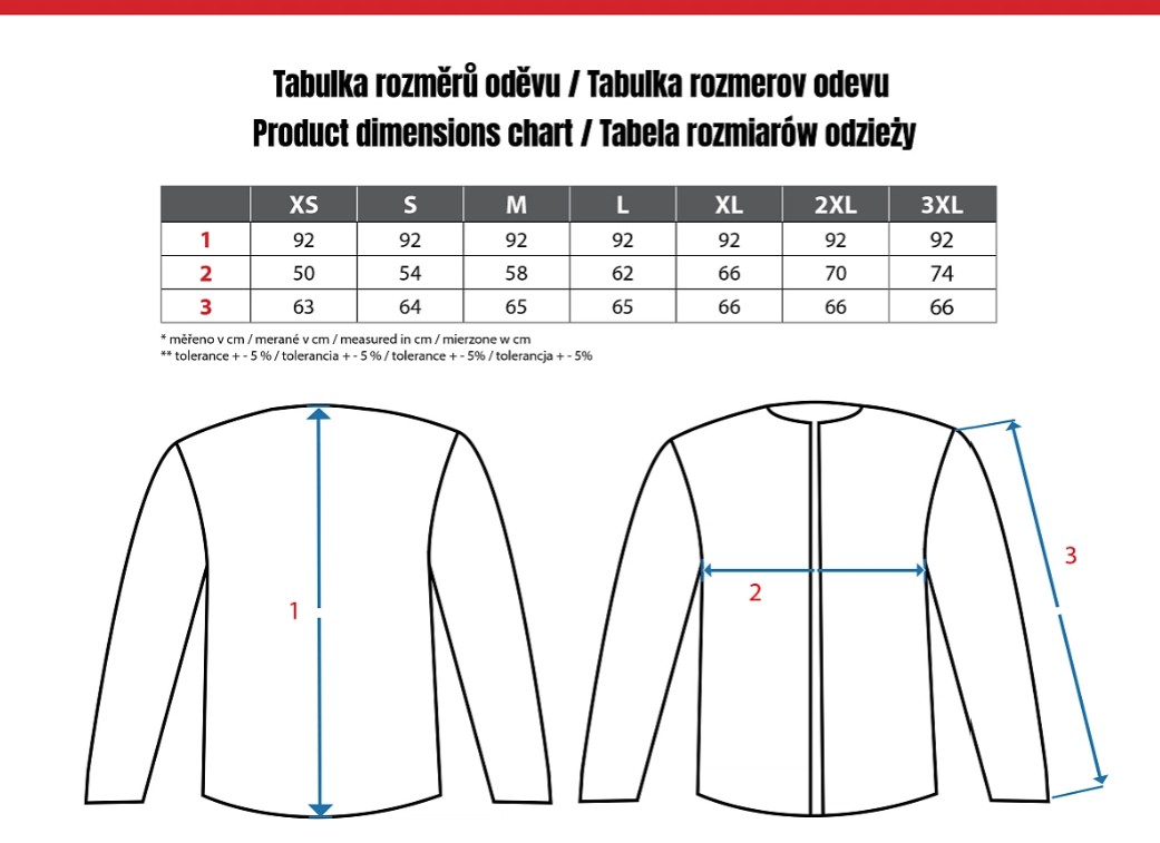 - rukávy ukončeny pružnou manžetou