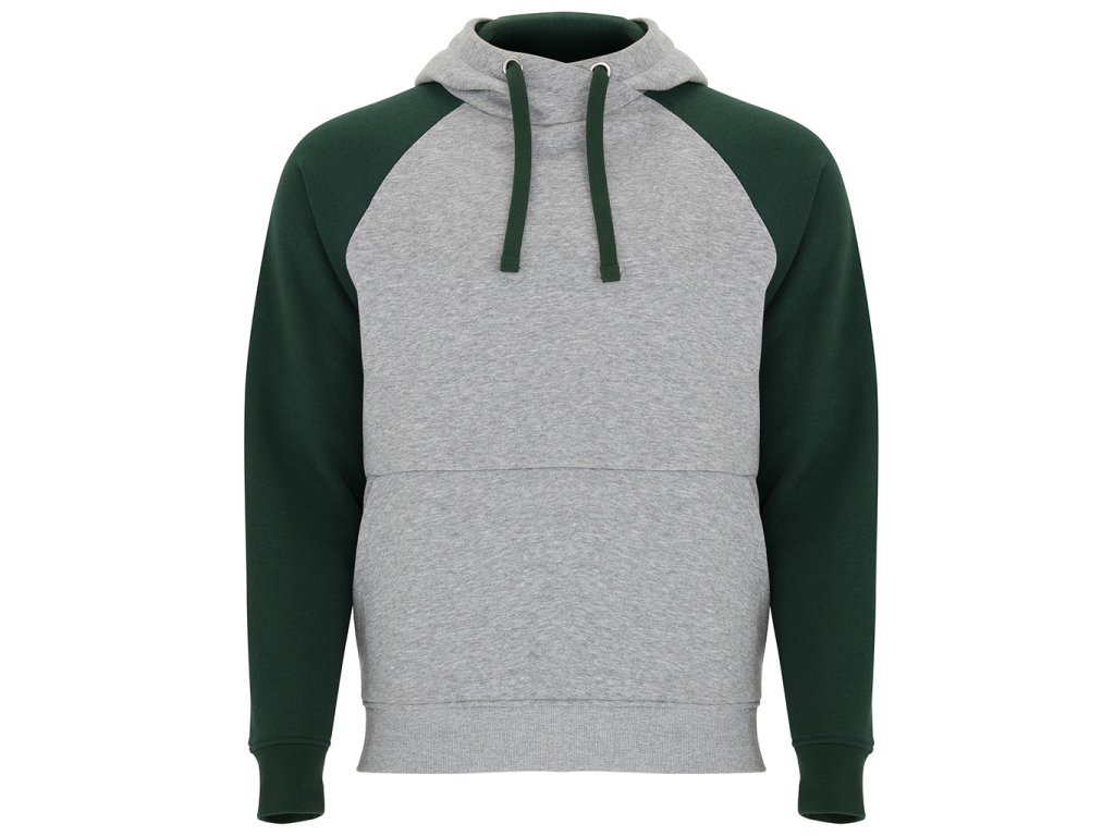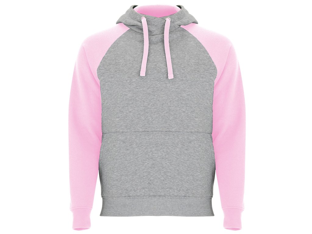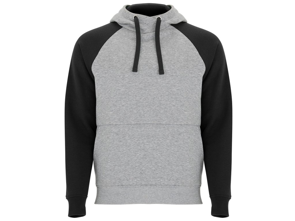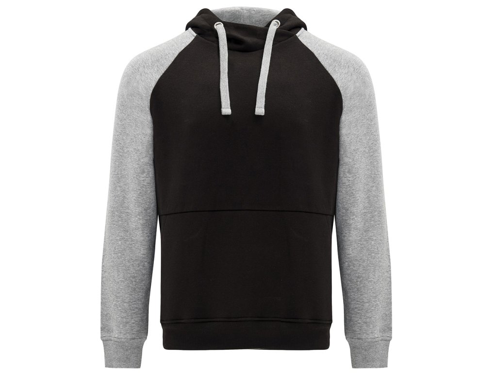 mikina BADET s kontrastní kapucí a klokaní kapsou, pohodlná, moderní a ideální pro volný čas i sport, šedá barva je melírovaná