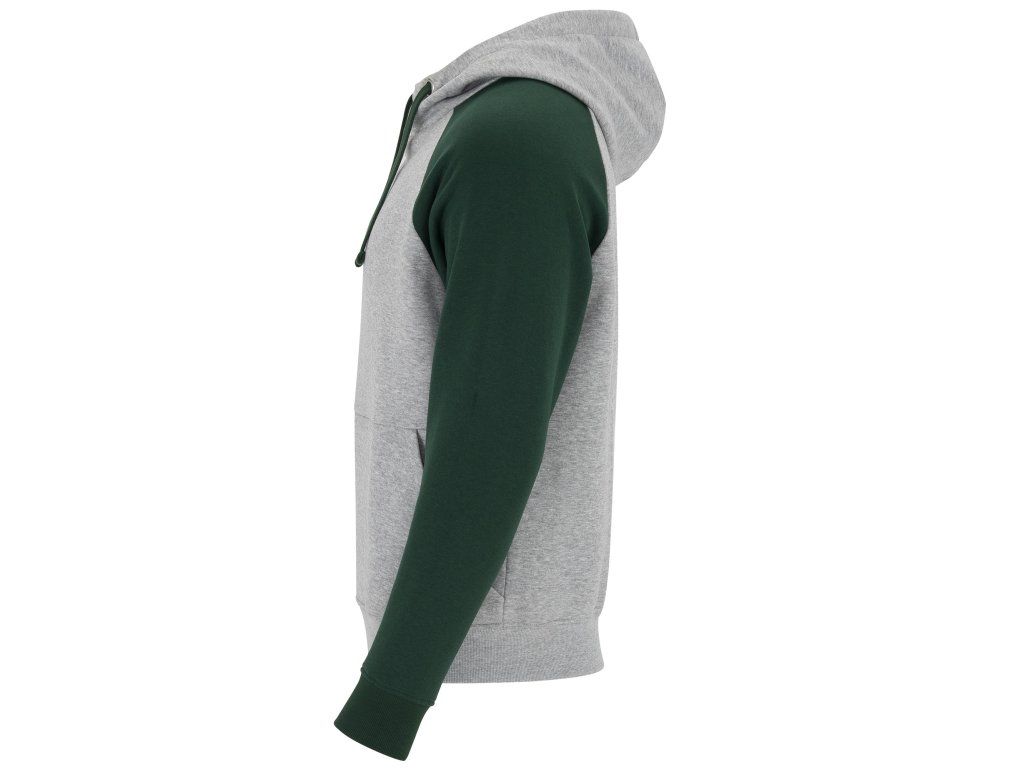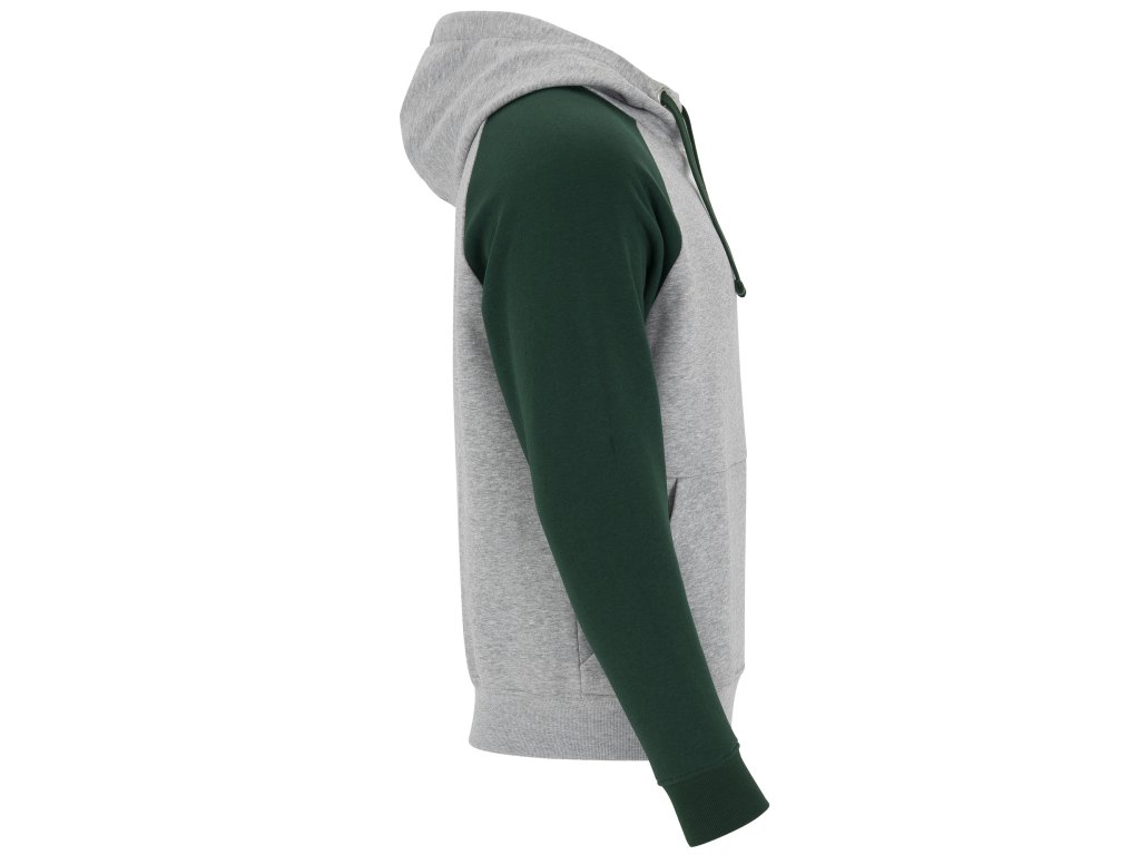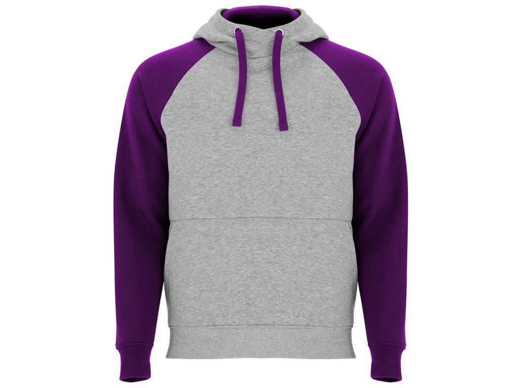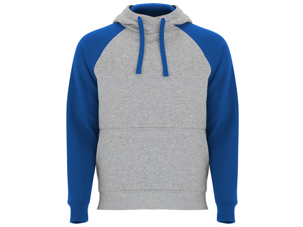 mikina BADET s kontrastní kapucí a klokaní kapsou, pohodlná, moderní a ideální pro volný čas i sport, šedá barva je melírovaná