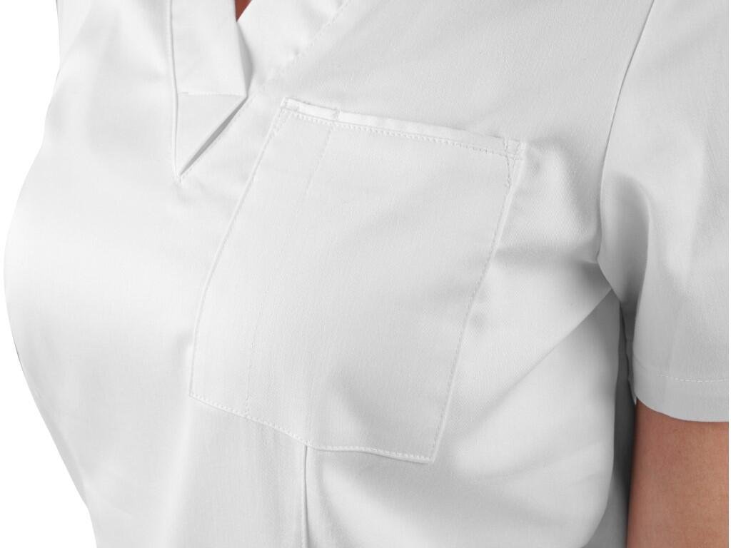 Dámská halena pohodlného střihu. Náprsní kapsa s menší kapsou na tužku, 2 spodní kapsy. Doporučené použití: soukromé ordinace, kliniky a různá zdravotnická zařízení, záchranné a zdravotní dopravní služby, lázeňská zařízení, ústavy sociální péče, lékárny, školy se zdravotnickým zaměřením.