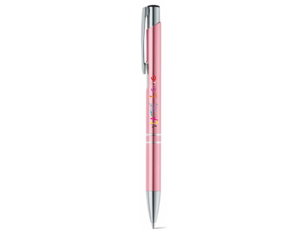 - hliníkové kuličkové pero s klipem a kovovou povrchovou úpravou