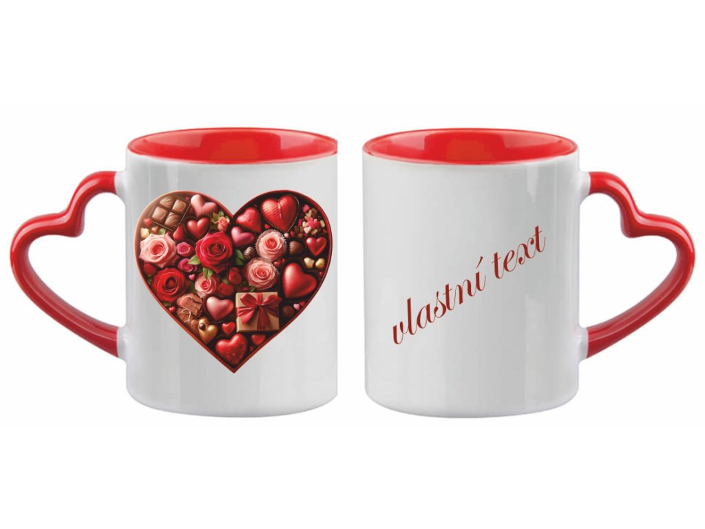 Hrnek s uchem ve tvaru srdce s motivem VALENTÝN 2