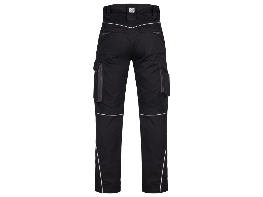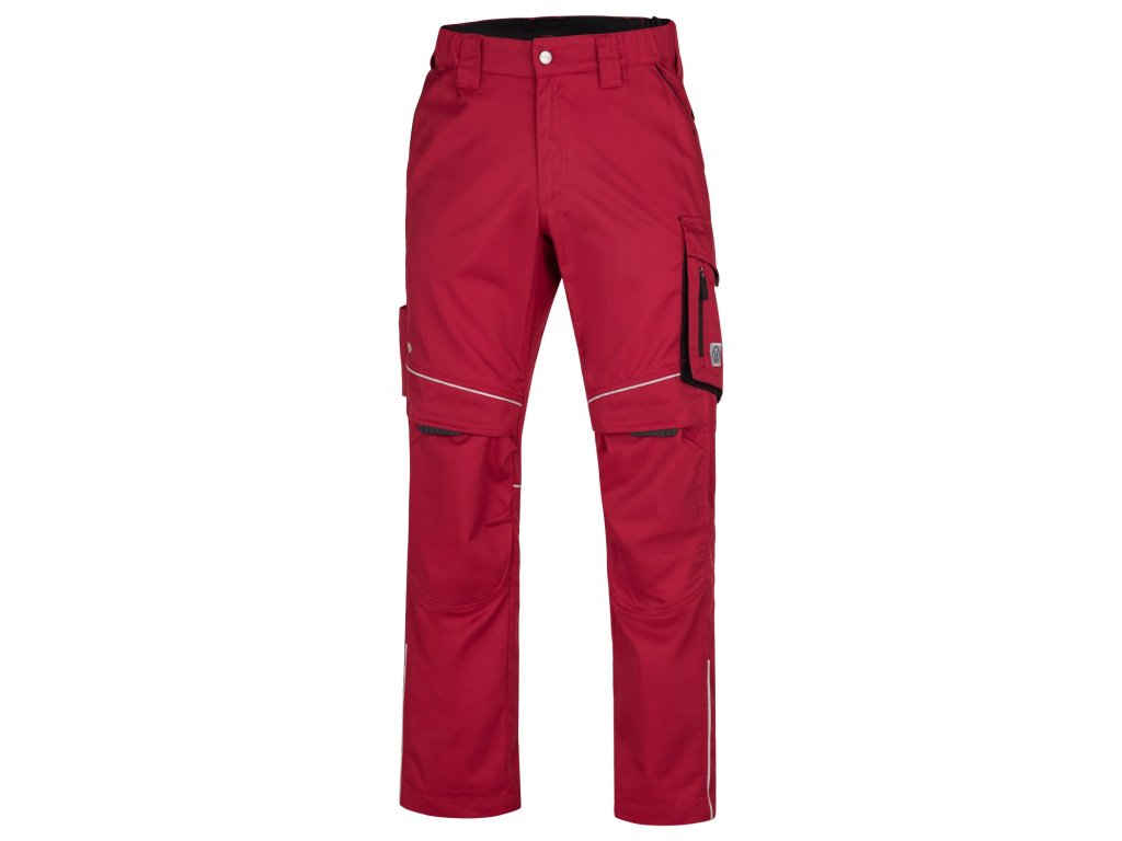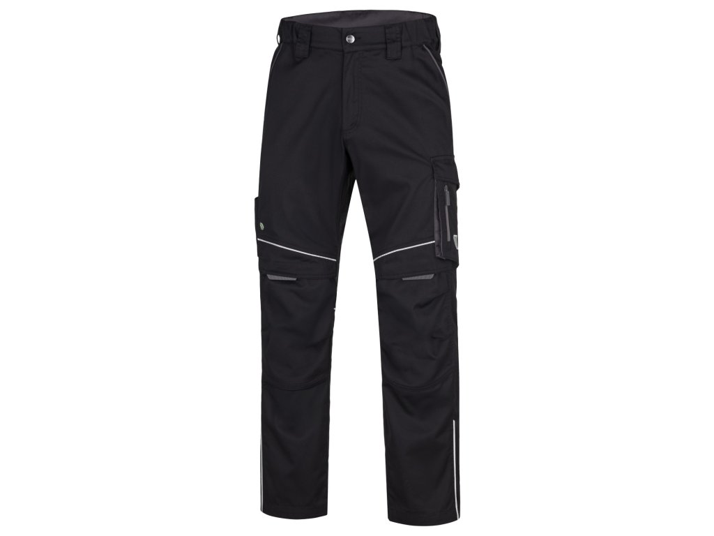 Pevná a současně lehká keprová tkanina se sníženou gramáží je příjemná na nošení. Pružný pasový límec s integrovanou gumou zvyšuje komfort nošení, 2 přední průhmatové kapsy, 2 zadní kapsy kryté patkami, velká průhmatová kapsa na levé nohavici krytá patkou, 1 zipová kapsa na mobil do velikosti 6,5“, kapsa na odlamovací nůž, šroubovák a tesařské tužky, na pravé nohavici kapsa na skládací metr, šroubovák a odlamovací nůž, zdvojené partie v oblasti kolen a kapsa na nákoleníky, reflexní paspule na předním a zadním dílu pro vyšší viditelnost.