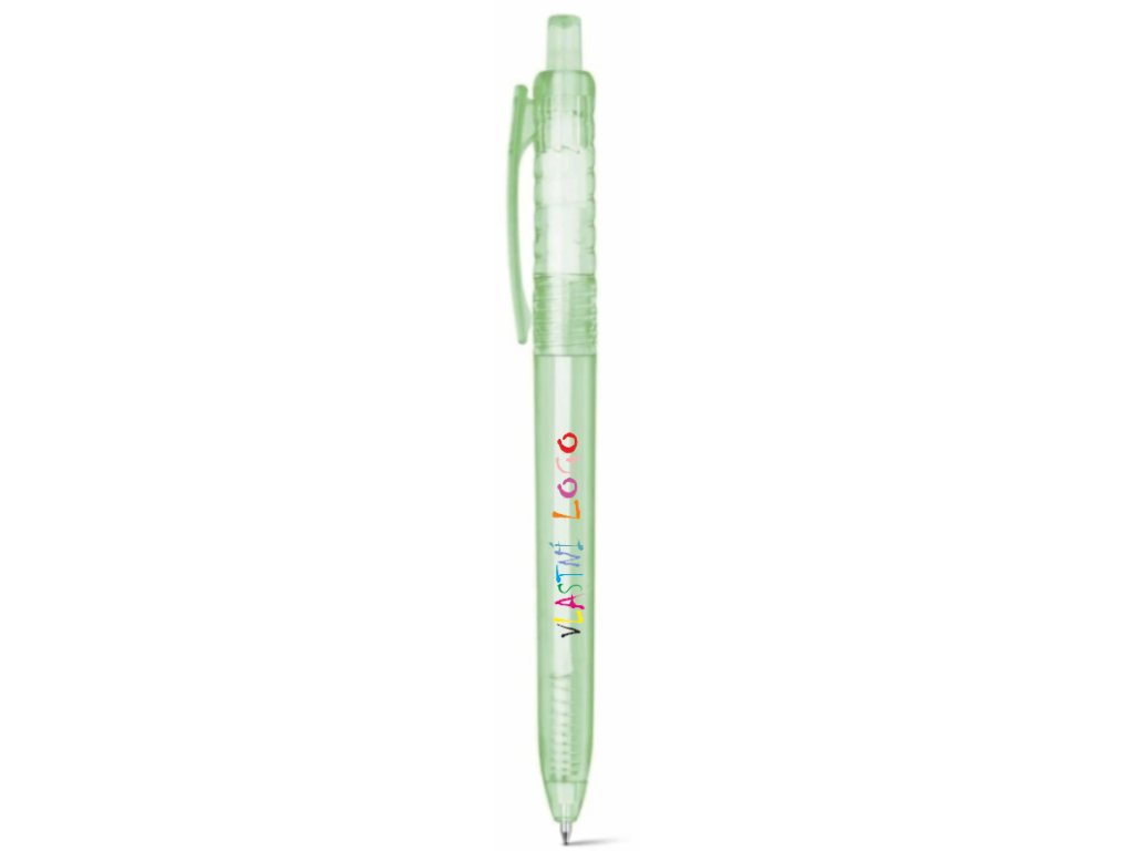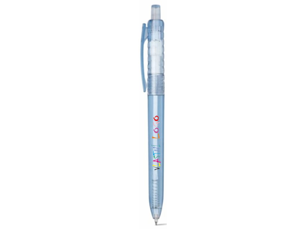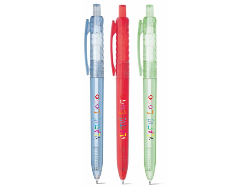 - průsvitné kuličkové pero vyrobené z recyklovaných PET lahví