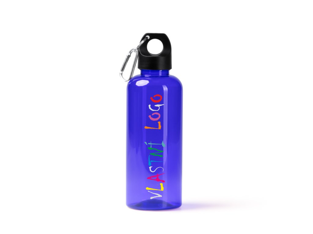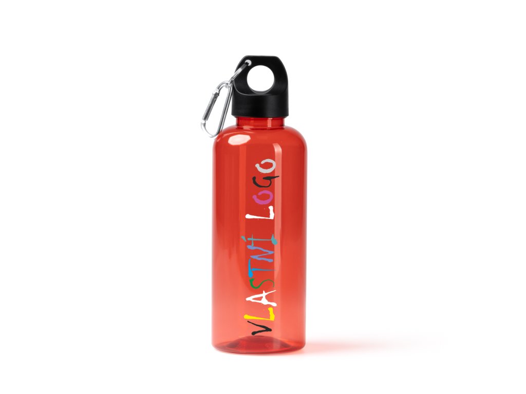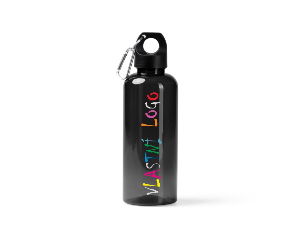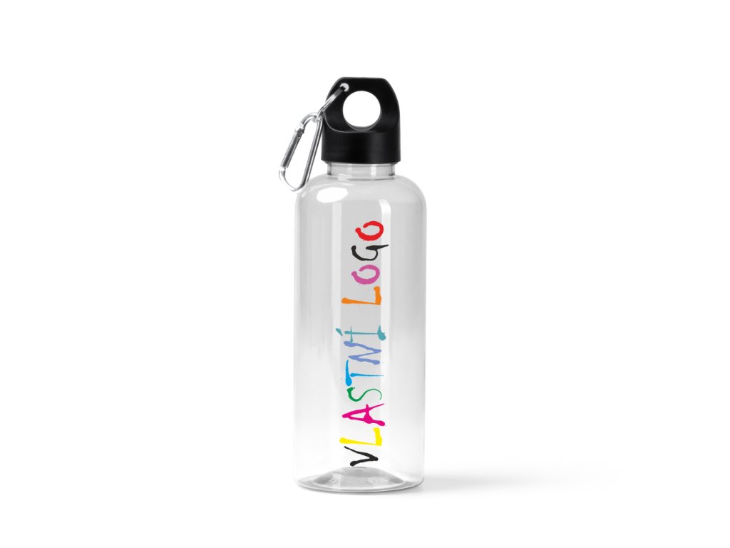 láhev rPET TAKEL 580 ml s tělem z RPET, víčkem a rukojetí s karabinou s vlastním potiskem