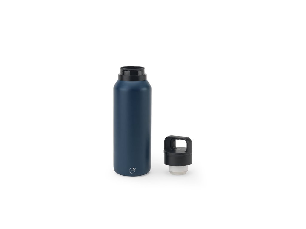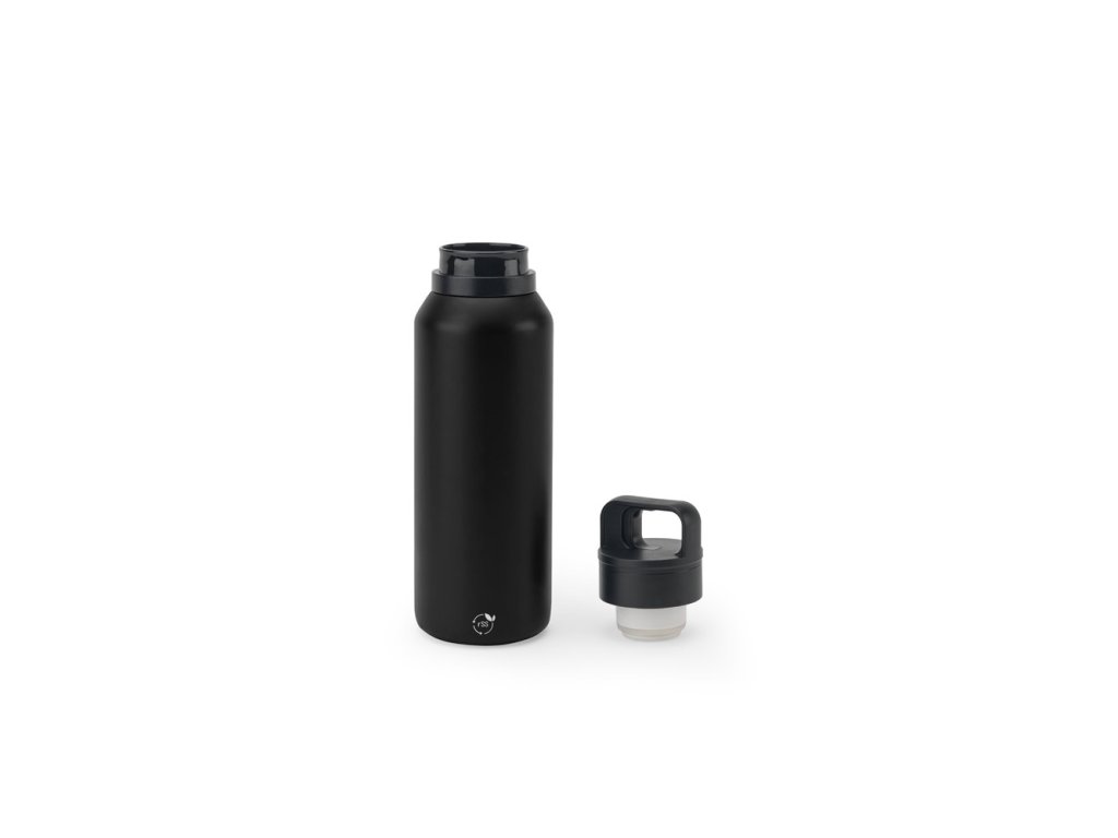 Láhev NICKLAUS je vyrobena z nerezové oceli s vysokým podílem recyklovaného materiálu (91 %) a je vybavena vakuově izolovanou dvojitou stěnou. Vnitřní stěna potažená mědí výrazně zlepšuje izolační vlastnosti a pomáhá udržet nápoje při optimální teplotě po dlouhou dobu. Netekoucí víčko z PP je opatřeno praktickým tlačítkem, které usnadňuje otevírání a každodenní používání. Matný povrch dodává láhvi moderní a reprezentativní vzhled. Díky objemu až 590 ml je láhev ideální pro práci, cestování, sport i volnočasové aktivity. Dodávána je v dárkové kraftové krabičce.