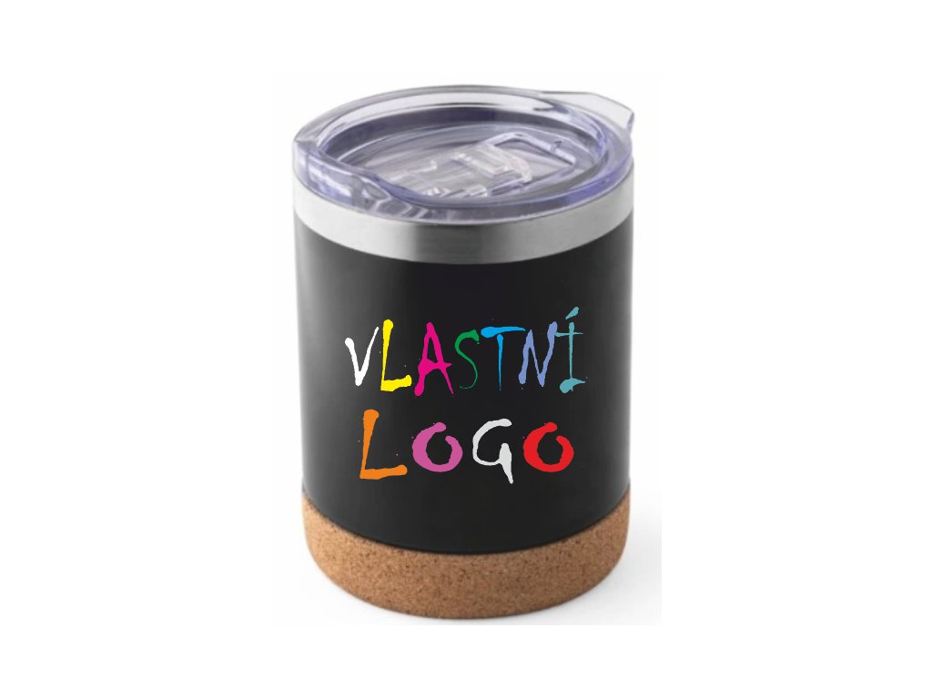 - nerezová vakuově izolovaná dvouplášťová cestovní nádobka s korkovou základnou
