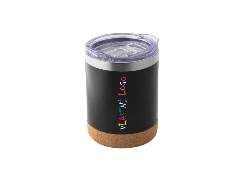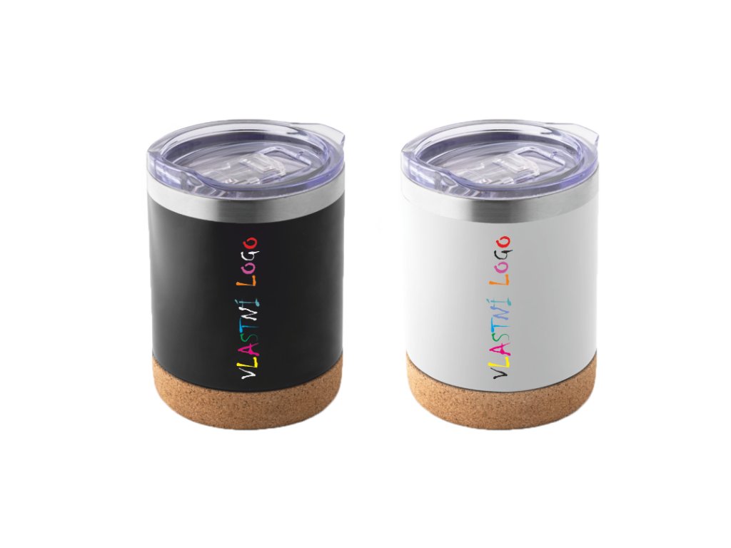 - nerezová vakuově izolovaná dvouplášťová cestovní nádobka s korkovou základnou