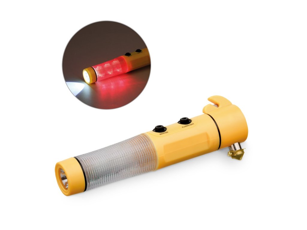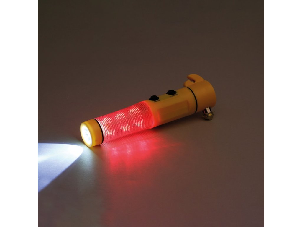 nouzové kladivo s magnetem, řezačem bezpečnostních pásů a světlem s 1 bílou LED a 3 červenými LED