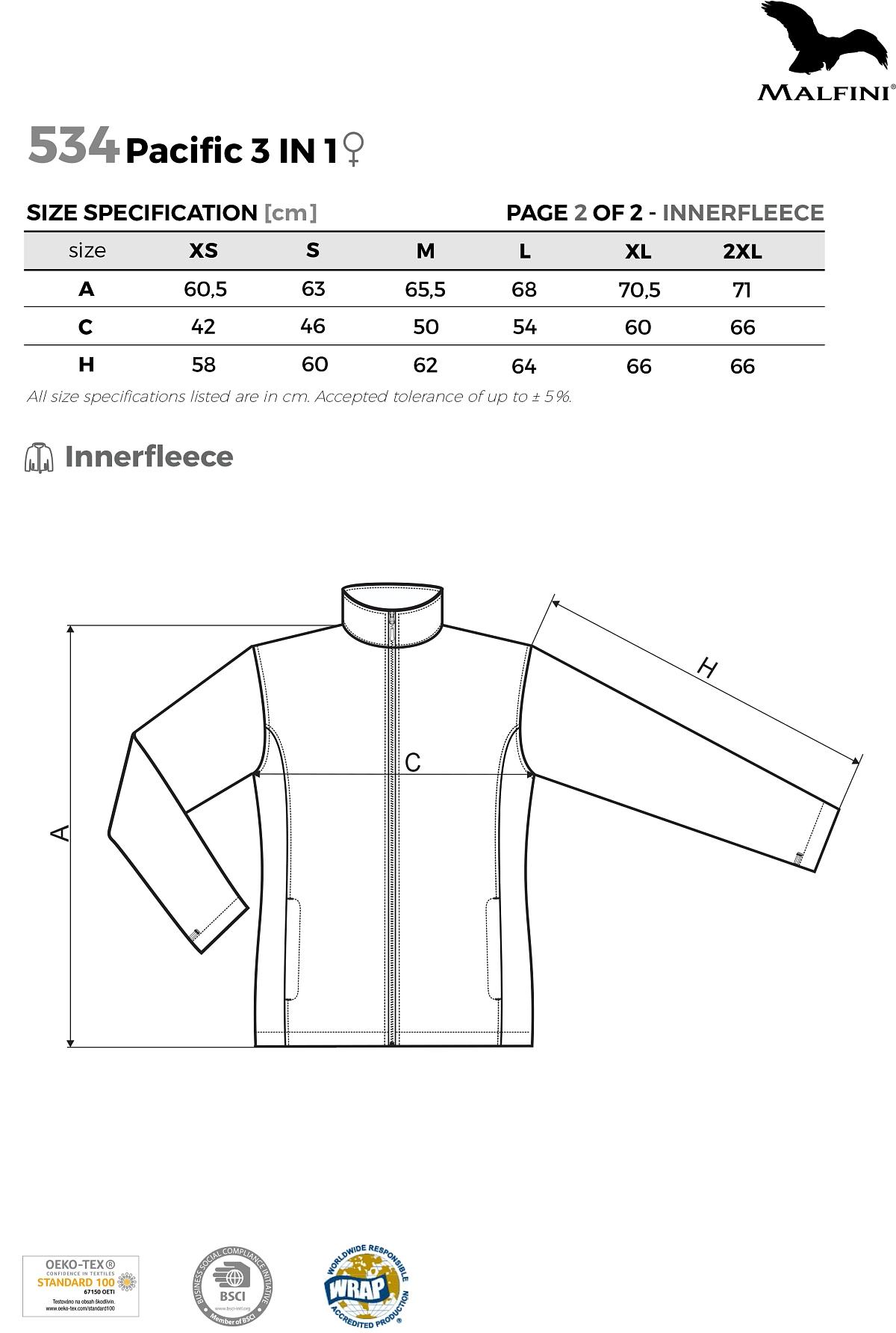 • odnímatelná vnitřní fleecová bunda, celopropínací kostěný zip, lištové kapsy, dolní lem na stažení elastickou šňůrkou, kontrastní prvky, antipilingová úprava z obou stran