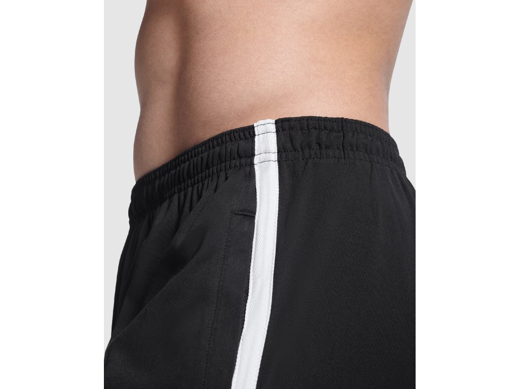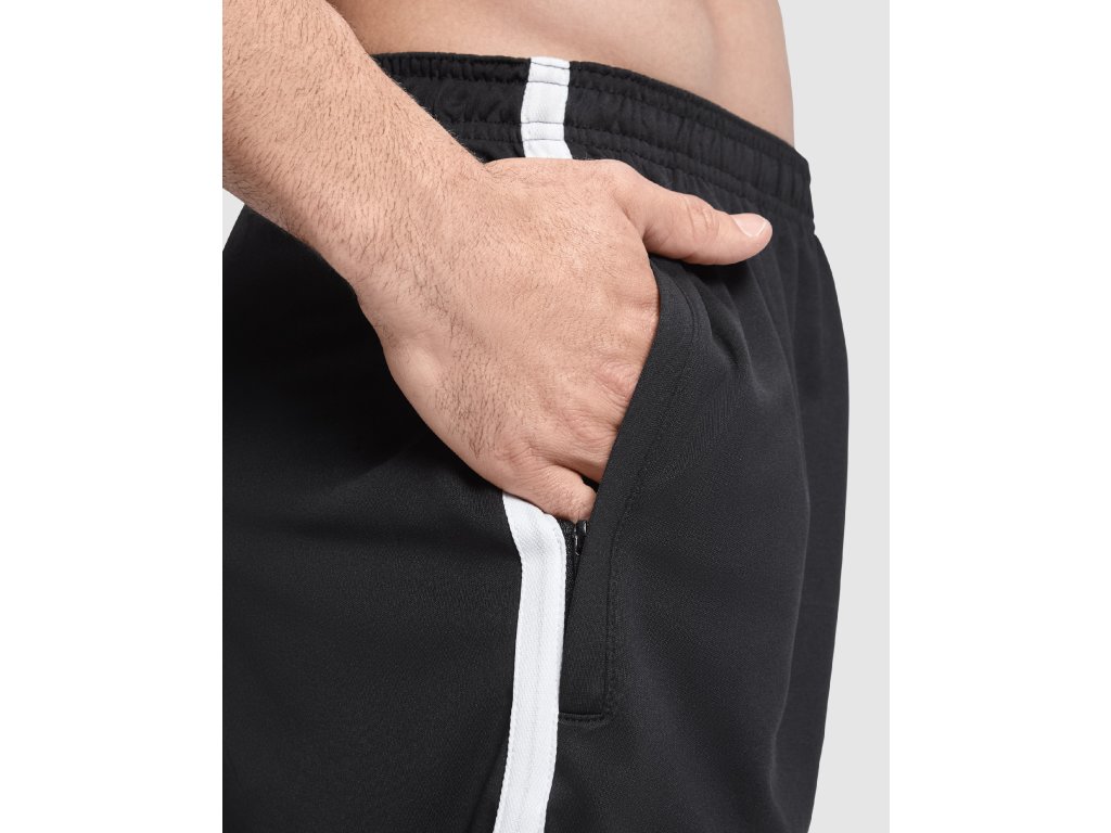 Pánské/dětské krátké sportovní bermudy jsou ideální pro sportovní aktivity, volný čas i každodenní nošení. Nabízejí komfort, funkčnost a moderní sportovní vzhled. Elastický pas se stahovací vnitřní šňůrkou v kontrastní barvě zajišťuje perfektní přizpůsobení, postranní kapsy na zip bezpečné uložení drobností a kontrastní postranní pruh dodává dynamický design. Funkční polyesterová látka (200 g/m²) poskytuje prodyšnost a pohodlí při pohybu. Odnímatelný štítek, dostupné i v dětských velikostech.