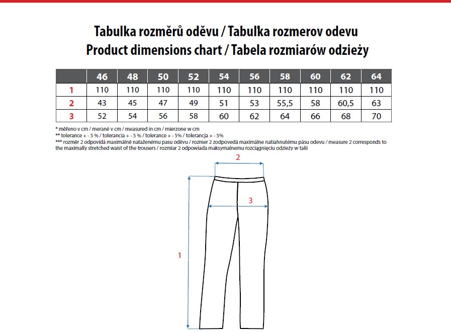 • typ oděvu: pracovní kalhoty