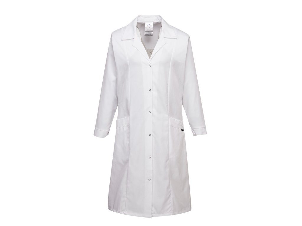 Tradiční plášť s předním zapínáním na druky pro pohodlné nošení po celý den. Dvě spodní přední kapsy, nastavitelné manžety.