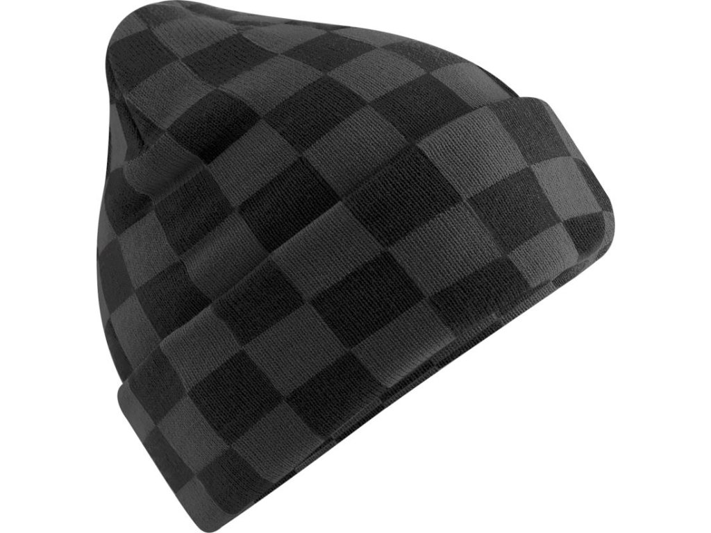 stylová zimní čepice se šachovnicovým vzorem z měkkého recyklovaného úpletu, teplá, pohodlná a ideální pro každodenní nošení