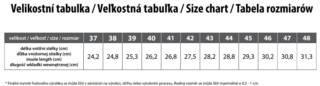 | Orientační hmotnost půlpáru ve velikosti 43: | 465 g |