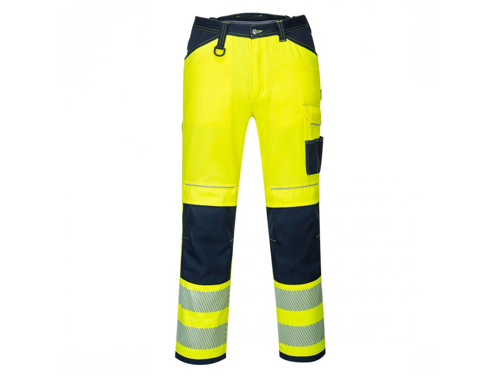 Vyrobeno z vysoce kvalitního pásku HiVisTex Pro a odolné polyesterovo/bavlněné tkaniny. Tyto moderní pracovní kalhoty poskytují maximální pohodlí pro nositele. Vyztužení tkanin v klíčových bodech oděru a trojité švy zaručují maximální odolnost. Kalhoty mají horní kapsy a snadný přístup do více stehenních kapes pro uložení telefonu klíčů a nástrojů.