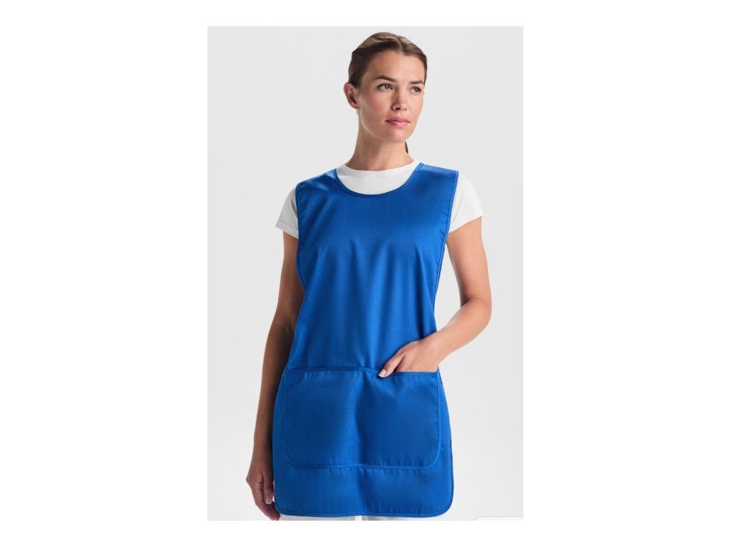 Pracovní zástěra Arzak s lemovanými okraji, přední kapsou a nastavitelným zavazováním v pase. Praktické řešení pro sjednocení pracovního oděvu týmu v gastronomii, zdravotnictví, úklidu i kosmetice.
