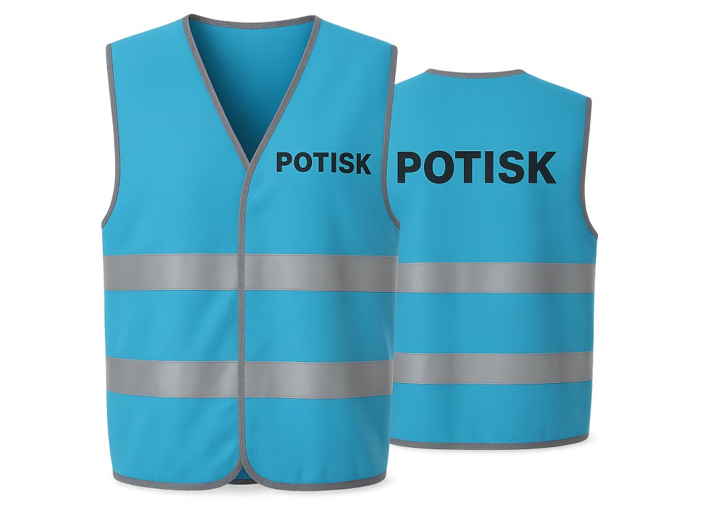 Výstražná vesta s vlastním potiskem. Pošlete nám logo, text, nebo obrázek, který potiskneme. Reflexní vesta s dvěma pruhy - je velmi oblíbená reflexní vesta, která nabízí ochranu a zároveň pohodlí při nošení.