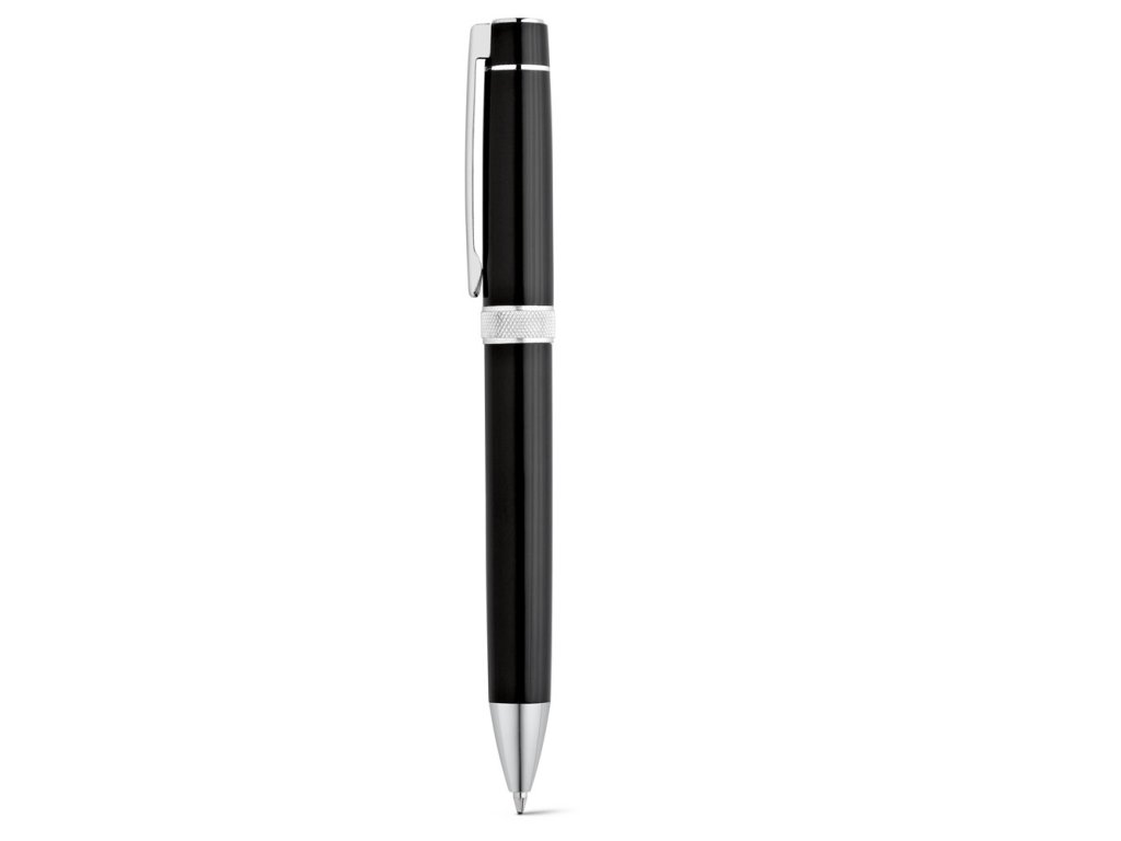 Sada psacích potřeb DOURO nabízí kombinaci rolleru a kuličkového pera s otočným mechanismem pro snadné a pohodlné používání. Kovové provedení dodává psacím nástrojům robustnost a luxusní vzhled. Černý inkoust zajišťuje čistý a výrazný zápis vhodný pro kancelářské i reprezentativní účely. Klip umožňuje snadné uchycení pera k dokumentům nebo kapsám. Celá sada je uložena v polstrované dárkové krabičce, která chrání obsah a podtrhuje prémiový charakter výrobku.