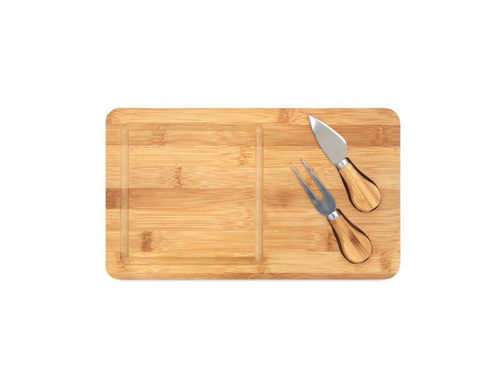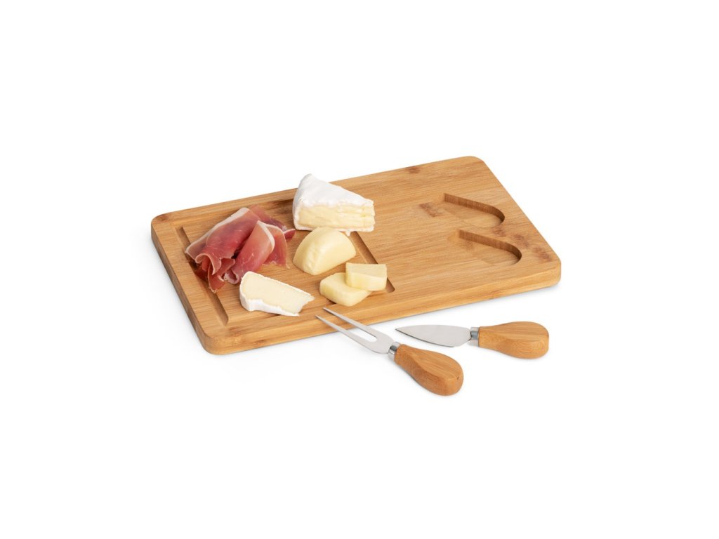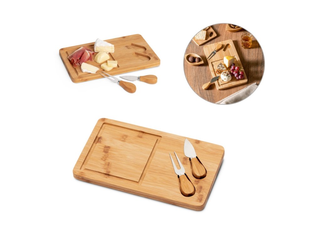• bambusová doska na syr s 2 nástrojmi z bambusu a nehrdzavejúcej ocele