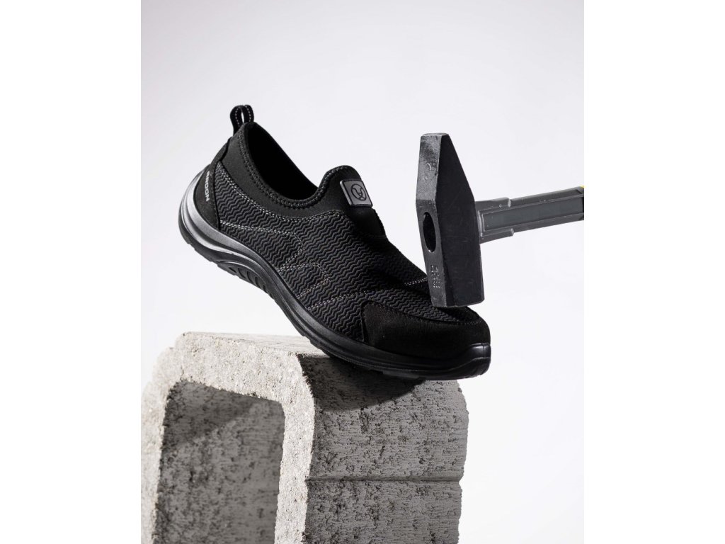 Bezpečnostné mokasíny s priedušným zvrškom na dvojzložkovej striekanej podrážke z PU/PU. Ľahká tenká podrážka so zaoblenou pätou je vhodná na šoférovanie a rôzne pracovné činnosti vo vnútornom prostredí. Jednoduché a rýchle obúvanie a vyzúvanie.