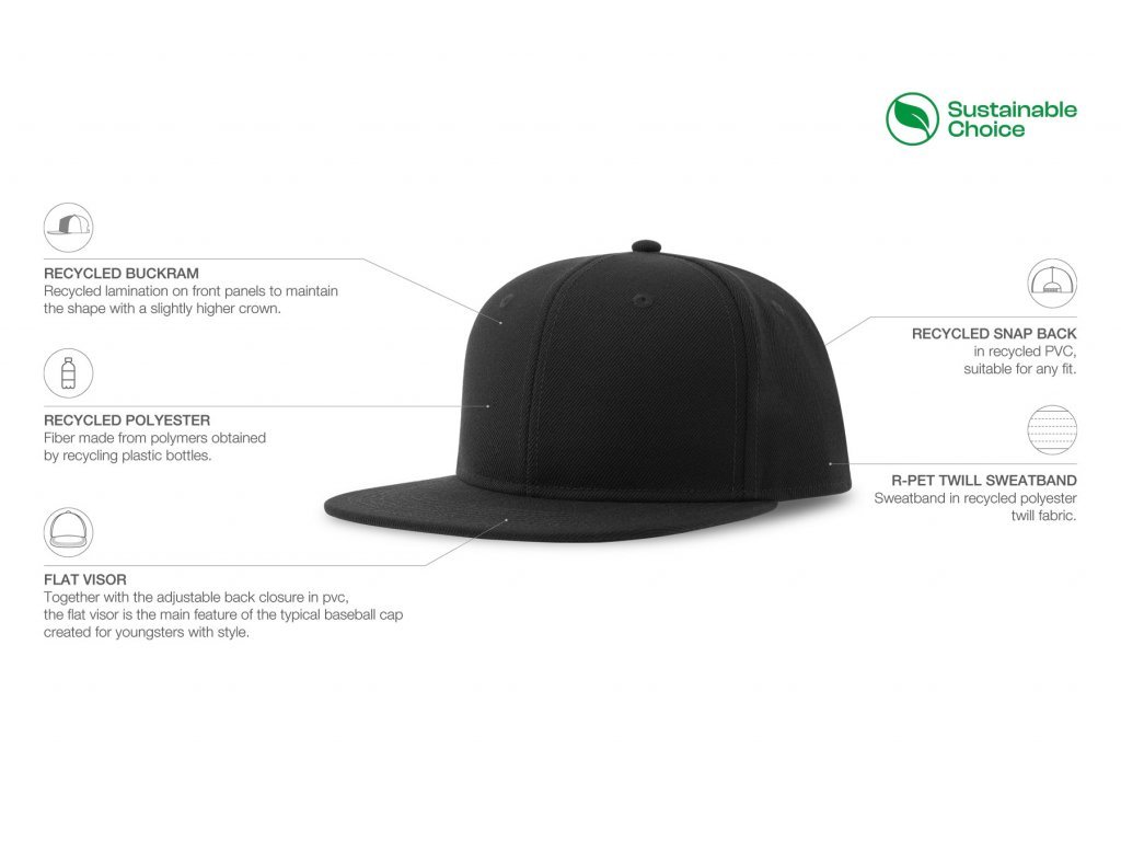- recyklovaný bukram, recyklované zapínanie, potný pásik z recyklovaného polyesteru