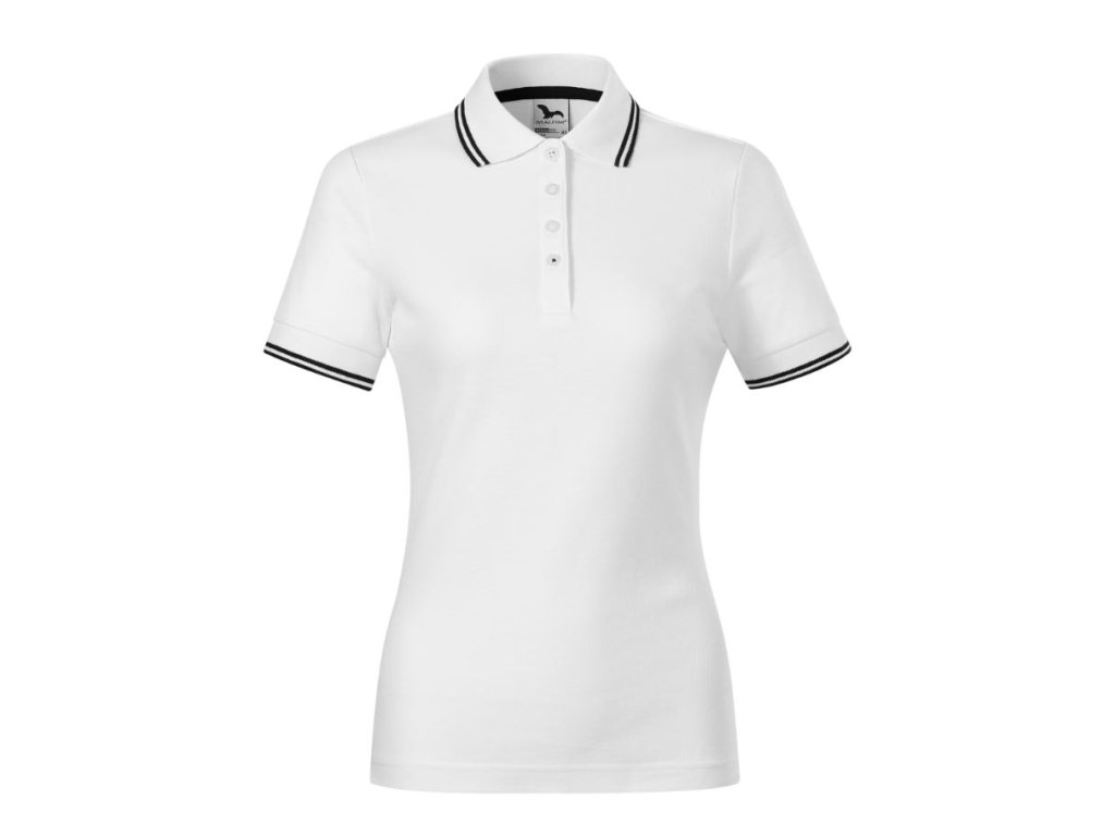 • mierne vypasovaný strih s bočnými švami, 2 kontrastné pruhy na rukávoch a golieri