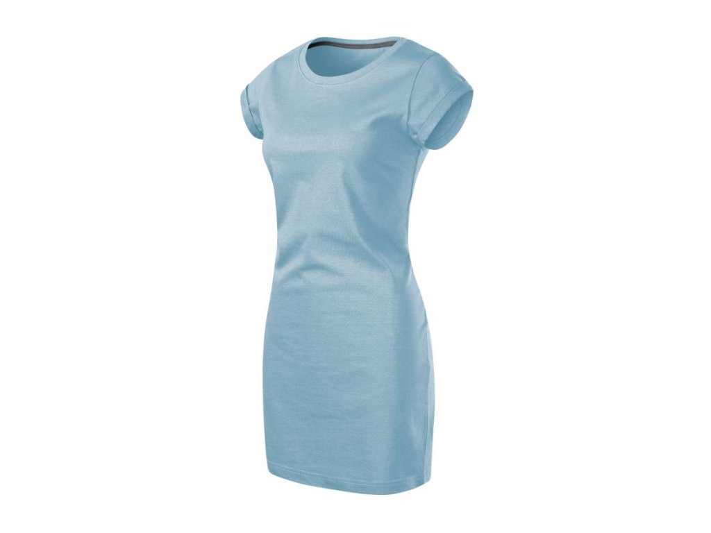 • voľný, mierne tvarovaný strih s bočnými švami, dĺžka nad kolená