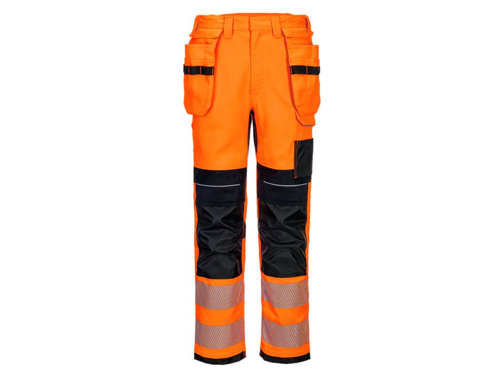 Inovatívne elastické nohavice s vysokou viditeľnosťou, ktoré využívajú vysoko výkonnú obojstrannú elastickú tkaninu pre maximálny rozsah pohybu pri práci. Medzi inteligentné funkcie patria multifunkčné vrecká, kolenné vrecká s hornou výplňou a ľahko prístupné viacsmerové stehenné vrecko na bezpečné uloženie telefónu, kľúčov a náradia. Zosilnená FR tkanina na kľúčových miestach oderu pre maximálnu odolnosť.