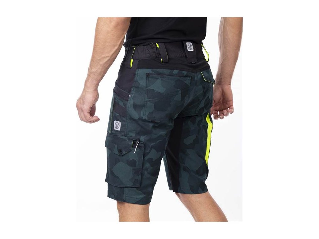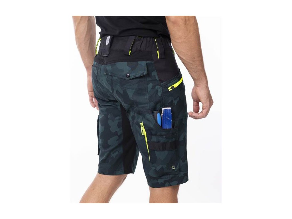 - šortky majú elastický golier v páse spolu so skrytým zadným dvojitým pútkom na opasok pre pohodlné nosenie, vnútornú protišmykovú pásku, zapínanie na D-krúžok, 2 klinové vrecká, 1 predné vrecko na zips, 1 predné náprsné vrecko so širokým pútkom