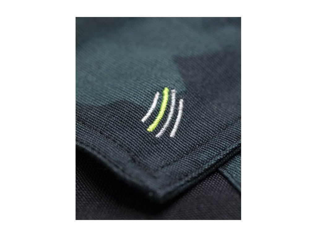 - na pravej nohavici je multifunkčné vrecko na skladací meter, skrutkovač a vystreľovací nôž so širokými pútkami, na ľavej nohavici je veľké dvojité vrecko kryté chlopňou na gombík, trojité prešitie v namáhaných oblastiach
