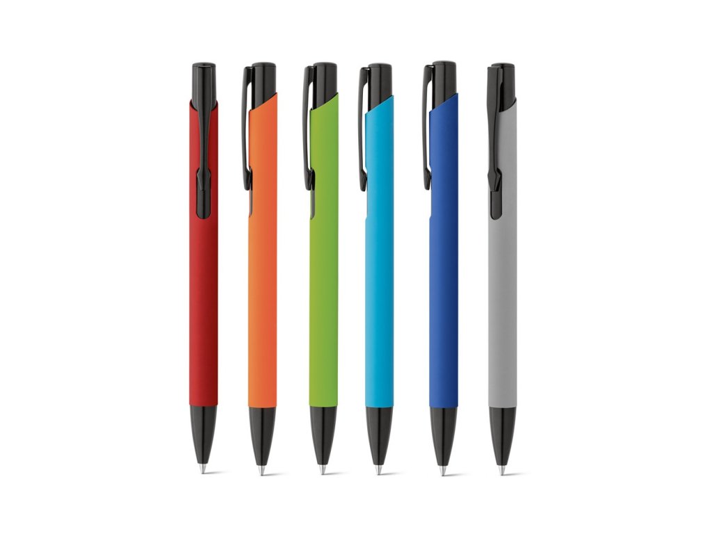 • hliníkové guľôčkové pero s farebným telom a gumovým krytom