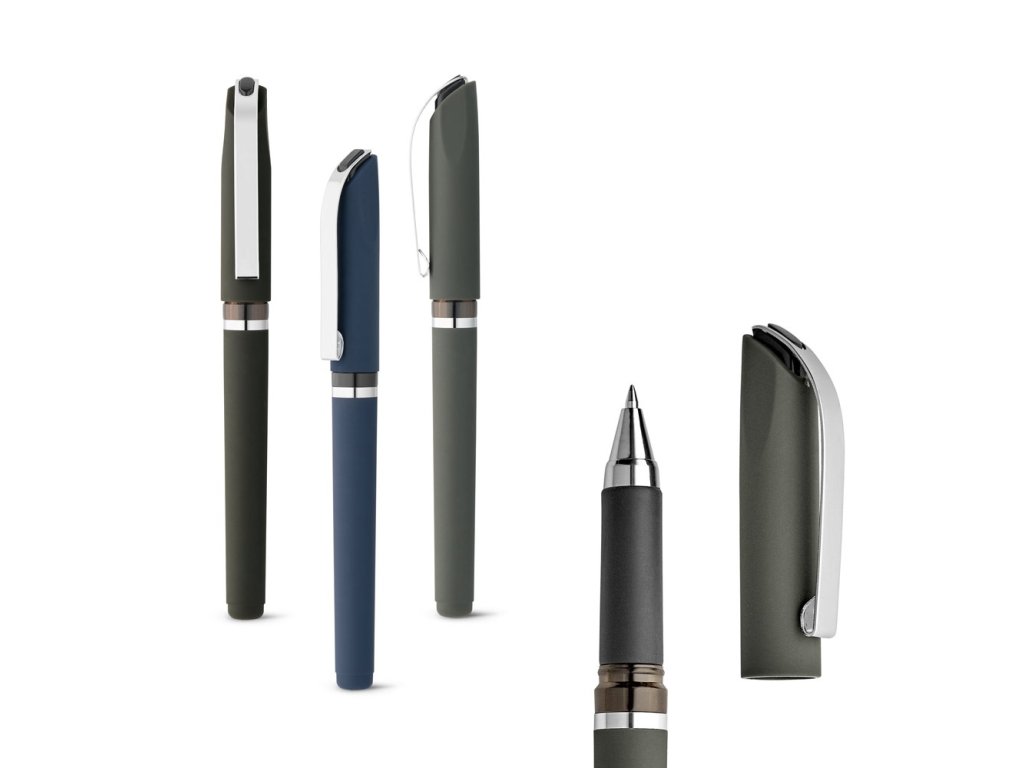- guľôčkové pero z ABS s pogumovaným povrchom, protišmykovým úchopom a kovovým klipom
