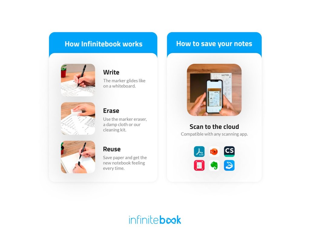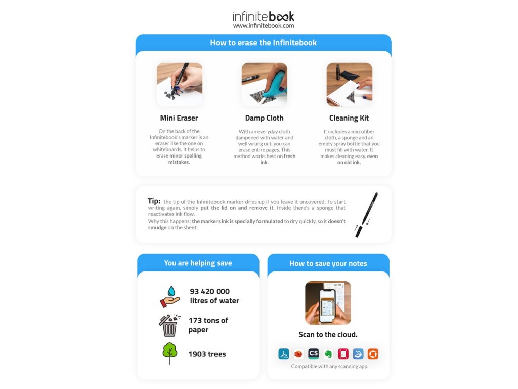 - poznámkový blok, ktorý umožňuje jednoduché písanie a mazanie, je praktickým riešením na minimalizáciu spotreby papiera