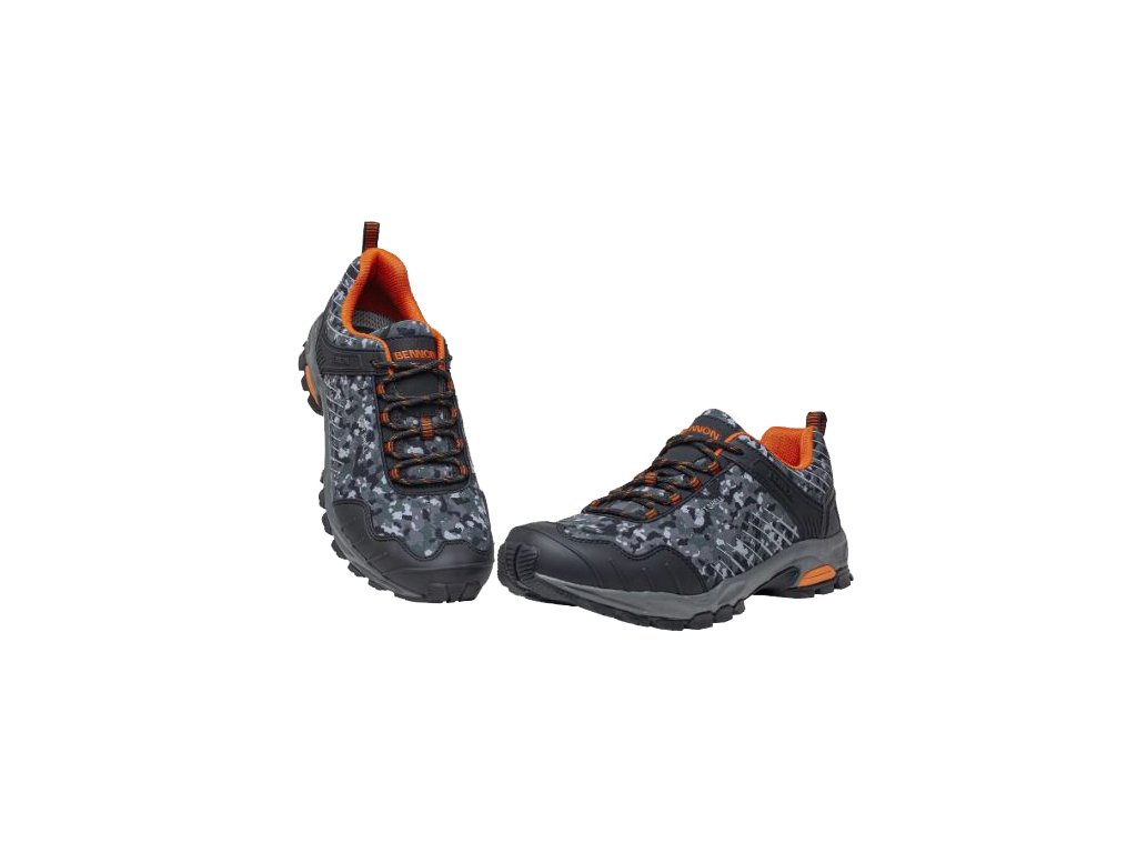Ľahká outdoorová obuv s maskáčovým vzorom.