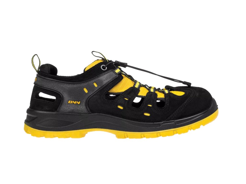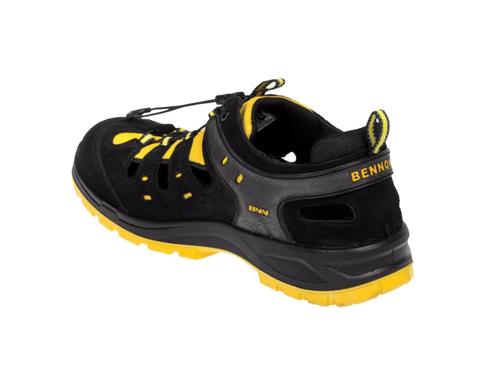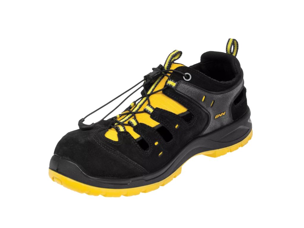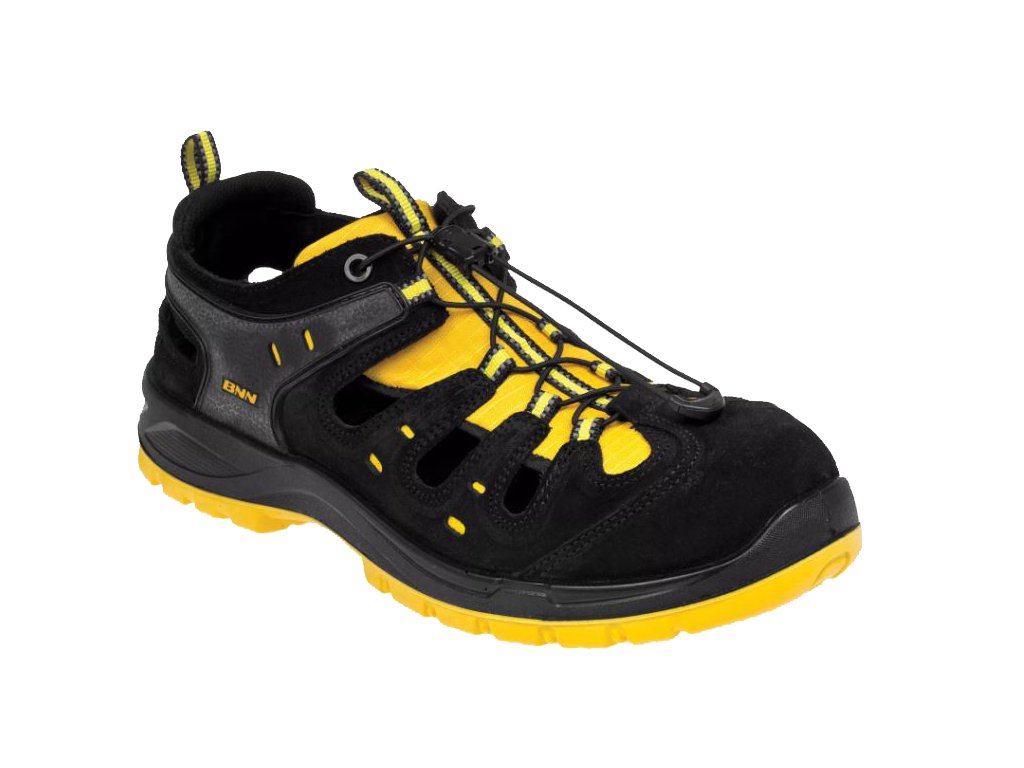 Vzdušné bezpečnostné sandále na striekanej podrážke vybavené kompozitnou špičkou. Pásik na jazyku a pútko na päte majú reflexný prvok. Obuv je vhodná do vnútorných aj vonkajších suchých prevádzok.