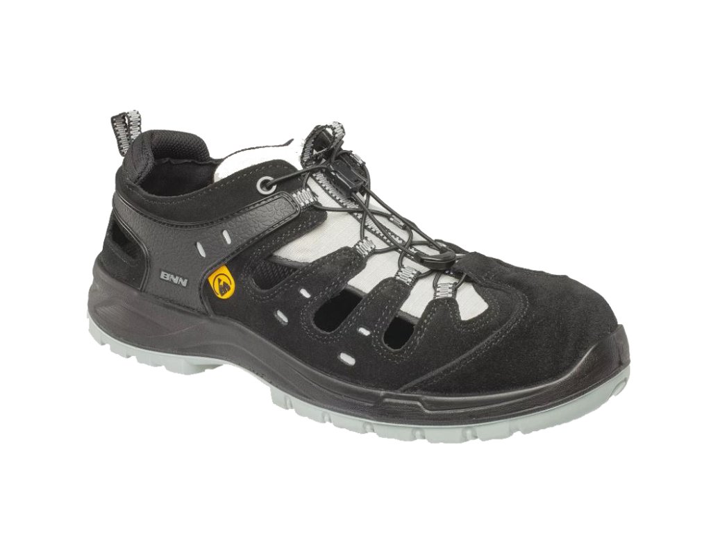Vzduchom striekané bezpečnostné sandále vybavené plastovou špičkou a kevlarovou podrážkou. Pásik na jazyku a pútko na päte majú reflexný prvok.
