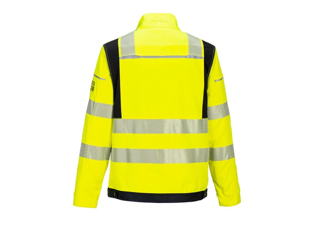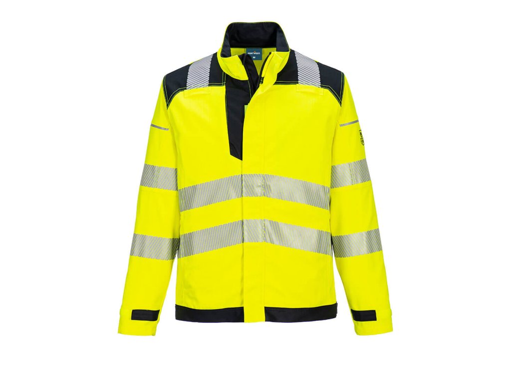 Táto moderná dvojfarebná bunda s vysokou viditeľnosťou má najnovší inovatívny dizajn a je štýlová aj praktická. Do horného vrecka sa zmestí moderný smartfón a priestranné spodné vrecká sú na zips pre väčšiu bezpečnosť. Medzi výrazné prvky patrí reflexné lemovanie, reflexná páska HiVisTex Pro, nastaviteľné manžety na háčik a slučku a zosilnené dvojité švy.
