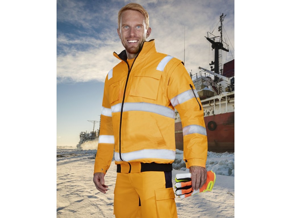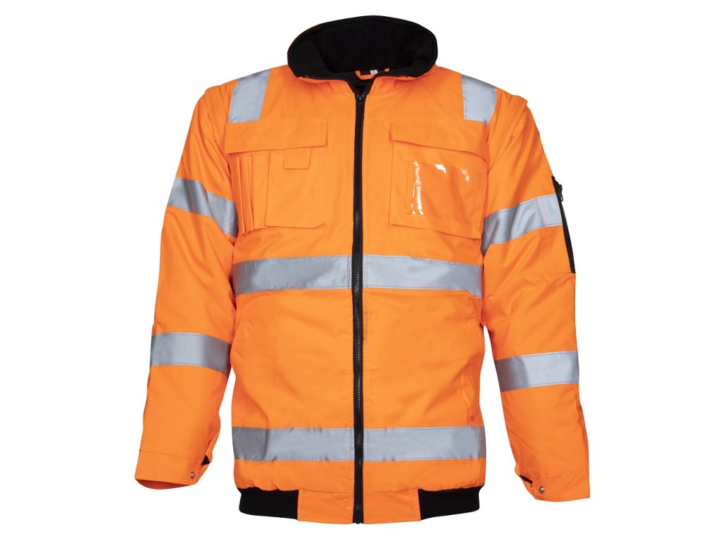 výstražná zateplená nepremokavá bunda s reflexnými prvkami a odnímateľnými rukávmi
