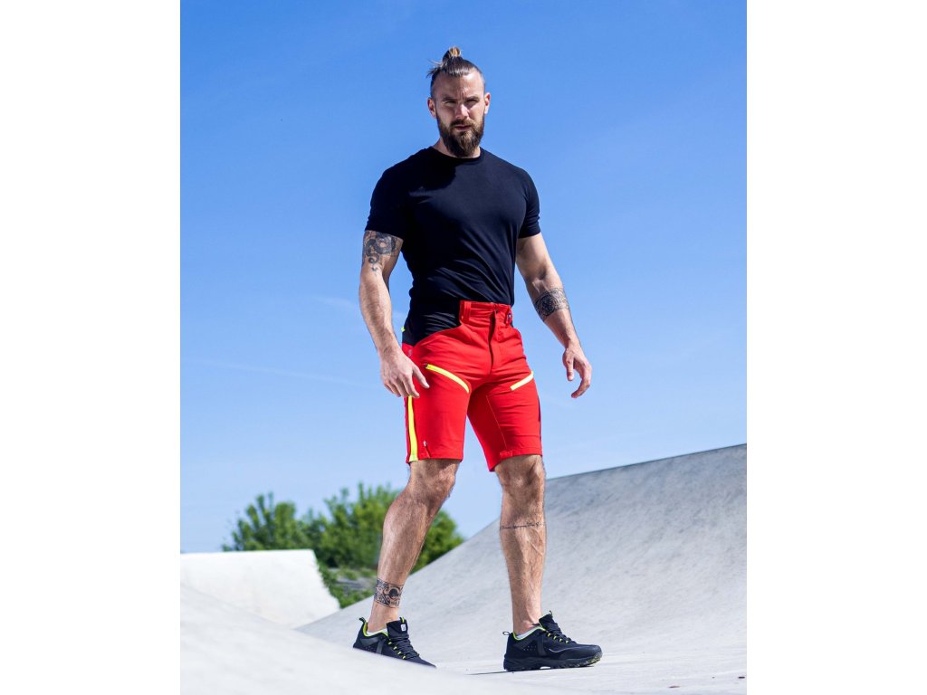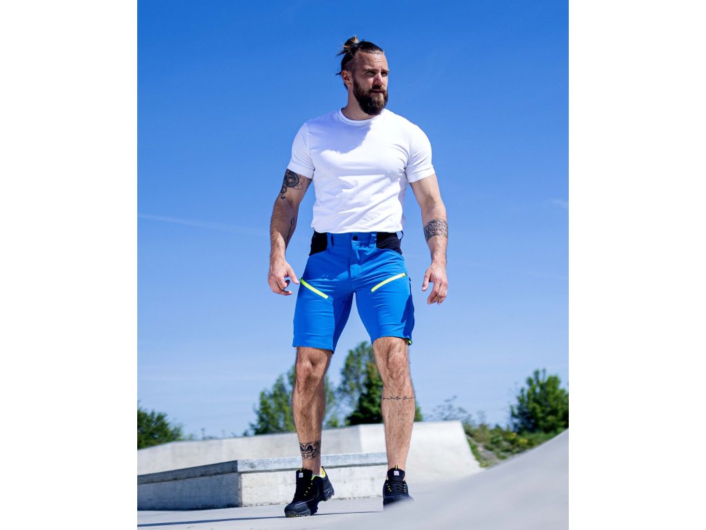 Pánske softshellové šortky slim fitstrih SLIM FIT. Elastický softshell v kombinácii s funkčným tvarovaním zaručuje skvelé prispôsobenie sa pohybu. Šortky sú vhodné aj do náročných klimatických podmienok, súvodoodpudivé a zároveň priedušné. Špeciálna vnútorná vrstva zaručuje vysoký komfort pri nosení.2 praktické vrecká na zips na prednej strane a 1 vrecko na zips na zadnej strane umožňujú bezpečné uloženie drobných predmetov. Elastický pás zaručuje maximálne pohodlie a optimálne nastavenie obvodu. Nohavice sú doplnenés vetracími zipsami, ktoré okrem odvodu tepla zabezpečujú aj pohodlné predĺženie obvodu nohy. Na zvýšenie bezpečnosti sú šortky doplnenéreflexné 3D výtlačky.