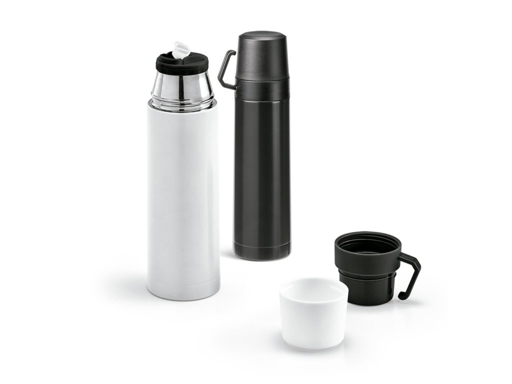 • termoska z nehrdzavejúcej ocele a PP s dvojitou stenou a pohárom