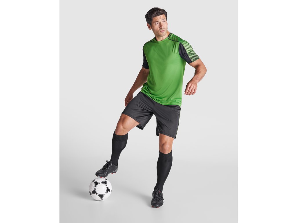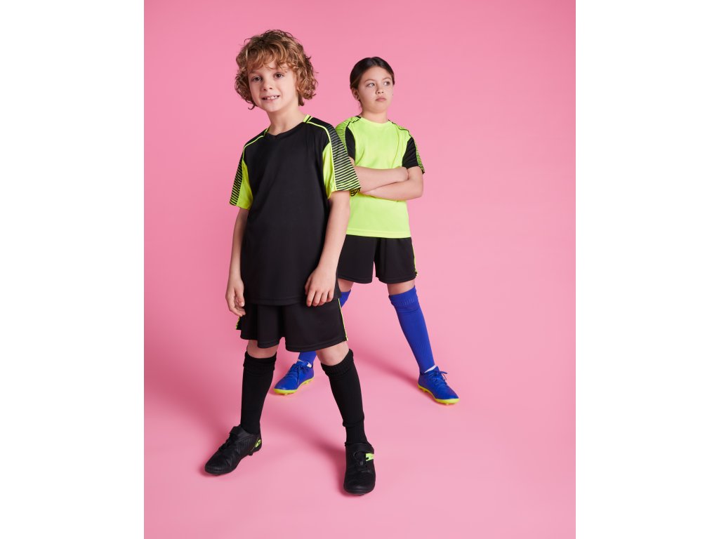 sportovní souprava JUVE obsahuje dvě trička a kraťasy z funkčního polyesteru, pohodlná, prodyšná, s raglánovými rukávy a elastickým pasem