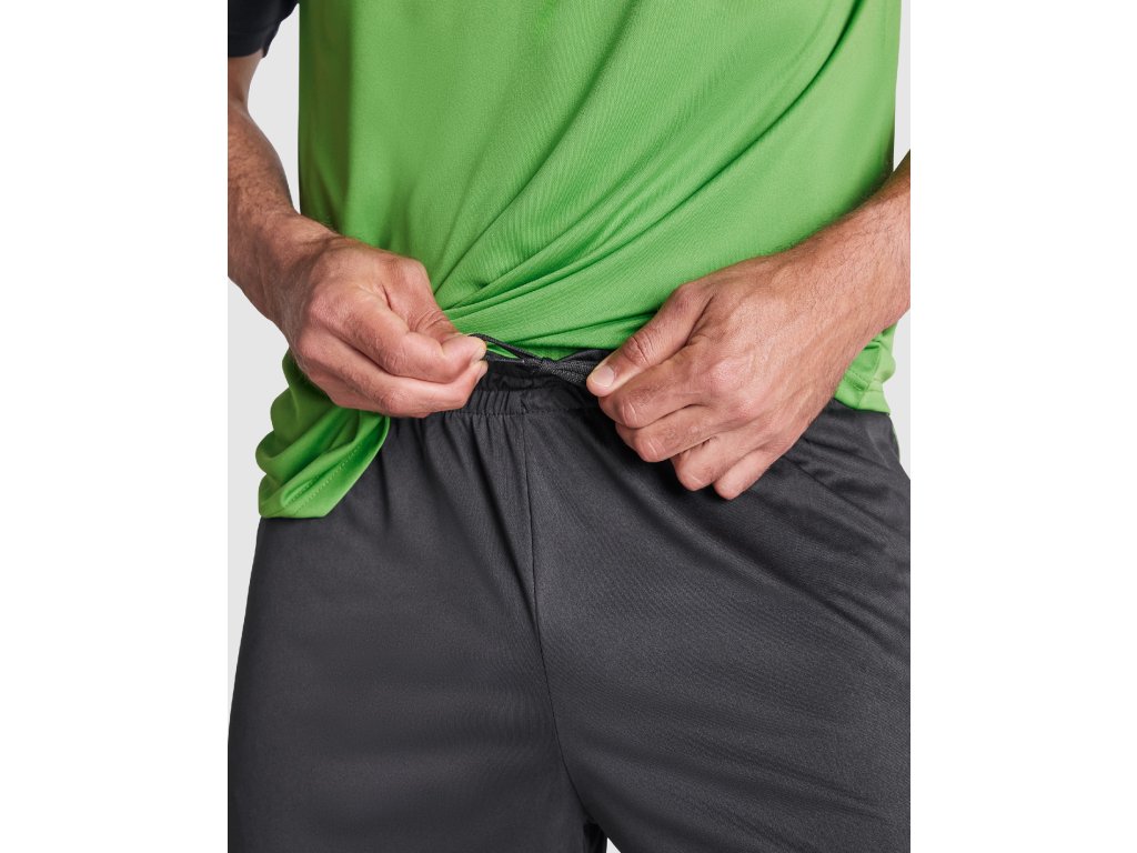 - kontrastní postranní pruh a postranní rozparek na spodním lemu kraťas